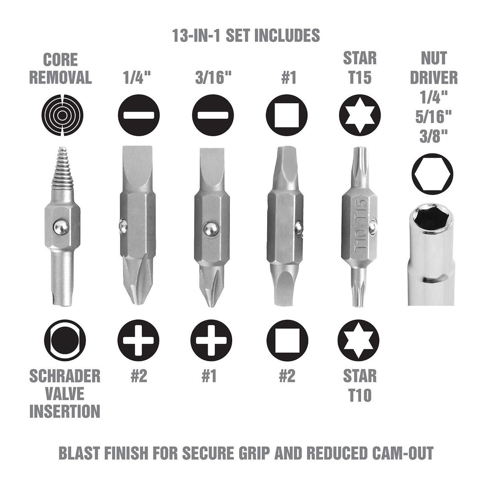 OEMTOOLS 22588 13-in-1 Multi Screwdriver and Nut Driver, Schrader Valve Tool, Impact-Resistant Multi Bit Screw Driver, Versatile Multitool Screwdriver The OEMTOOLS 22588 13-in-1 Multi-Bit Screwdriver, Nut Driver, and Schrader Valve Tool is designed to meet the diverse needs of automotive professionals. This versatile multi bit screwdriver combines 13 tools in one, including slotted, Phillips, square, and Torx bits, making it a must-have for various fastening tasks. The interchangeable shaft allows you to switch between 1/4", 5/16", and 3/8" nut driver sizes, offering adaptability in every situation. The handle is crafted from impact- and solvent-resistant acetate, ensuring durability even in harsh conditions. The blast-finished bits provide a secure grip, reducing cam-out and ensuring precise operation. The included Schrader valve bit adds functionality, making tire maintenance quick and efficient. Whether you're handling general maintenance or specific automotive repairs, this all in one screwdriver is built to perform. Compact and easy to use, it’s the perfect addition to any toolbox, offering the reliability and versatility you need for any job. Impact-Resistant Handle: The durable acetate handle of this multi-bit screwdriver stands up to heavy use, offering impact and solvent resistance, ensuring longevity and reliability on tough automotive jobs. Interchangeable Nut Driver: Quickly switch between 1/4", 5/16", and 3/8" nut driver sizes with the convertible shaft, making this combination screwdriver an essential tool for diverse automotive fastening tasks. Secure Bit Retention: The blast finish on each bit provides a secure grip, minimizing cam-out and ensuring precision in various applications, from simple repairs to intricate automotive work. Schrader Valve Tool: Includes a specialized Schrader valve core removal and insertion bit, allowing for quick and efficient tire maintenance, adding versatility to this multi tip screwdriver. Versatile Bit Selection: Multibit screwdriver equipped with slotted, Phillips, square, and Torx bits, this 13-in-1 driver tool handles a wide range of tasks, from general maintenance to specific automotive applications. Shipping from the USA All of our products are shipped from the USA, ensuring quick delivery to your destination. Payment We offer the following payment methods: PayPal, credit card, bank transfer, and eBay's secure payment system. Free Shipping & Free Returns Shipping within the USA is FREE. Additionally, any return is absolutely free for you. Risk-Free Purchase You have the option to return an item within 30 days without any justification. We cover the return shipping costs! Fast Shipping We ship immediately upon receipt of payment. Generally, the package is delivered within 2-3 days in the USA. If it takes longer, we will contact you. Quality and Costs Made in Europe, USA, China No customs fees or additional charges Total satisfaction guarantee Invoice with declared VAT available upon request in .pdf format Feedback Your feedback is very important to us. After you pay for your purchase, you will automatically receive positive feedback from us.