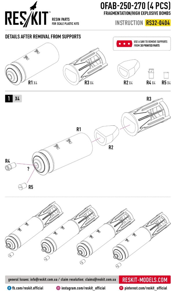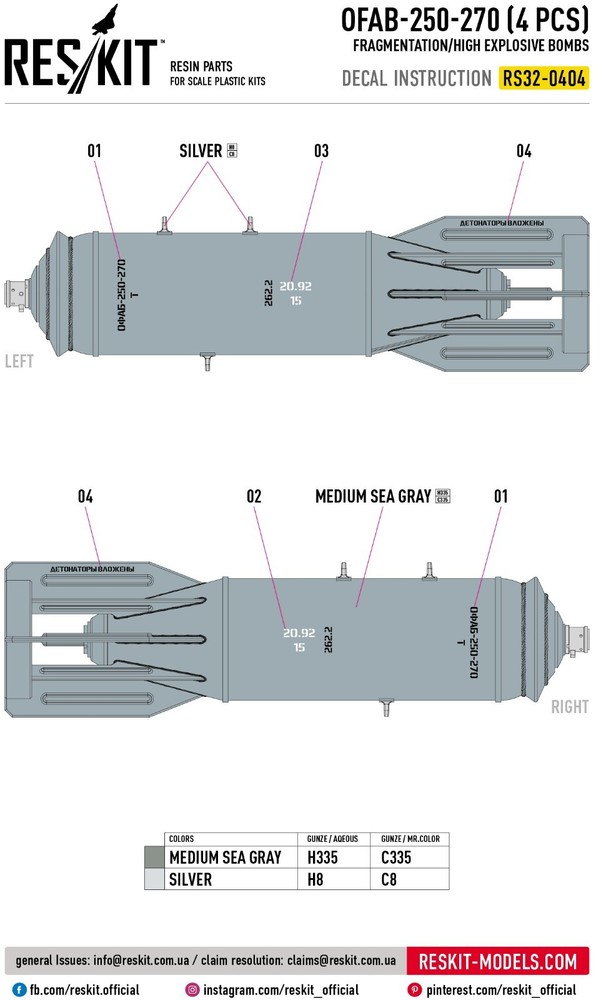 OFAB-250-270 fragmentation/high explosive Bombs (4 pcs) (MiG-21/23/27/29, Su-7/17/20/22/24/25/27) (3D Printed) Scale 1:32 ResKit RS32-0404 for Aircraft Model Kit Premium Resin & 3D-Printed Upgrade for Scale Plastic Model Kits Take your scale model builds to new heights with this detailed set from ResKitβa trusted name in professional-grade accessories for plastic model kits . Scale: 1:32 Manufacturer: RESKIT (Accessories for Scale Plastic Kits) Model (SKU): RS32-0404 Country/Region of Manufacture: Ukraine Condition: New in Box π¬ Need more stock? Weβve got you! Message us to customize your order quantity . As direct partners with manufacturers, we restock fast to meet your needs. π― Rapid replies assured! Available all day, with only time zones causing minor delays. π π Order Transparency We're here to help and will keep you informed on your order status. π Product Specifications Material: Resin / 3D Printed Features: Kit Kit description: Unpainted, Unassembled, Kit do not contain paints and glue Category: Resin & 3D accessories Type of equipment: Aircraft Type of product: Pylons / Bomb Racks Recommended kit: Any / Universal Country of origin: Ukraine / USSR Skill level: Advanced Type aircraft or vehicle: Mikoyan-Gurevich MiG-21 Fishbed Mikoyan-Gurevich MiG-23 Flogger Mikoyan-Gurevich MiG-27 Flogger Mikoyan-Gurevich MiG-29 Fulcrum Sukhoi Su-7 Fitter-A Sukhoi Su-17/22 Fitter Sukhoi Su-24 Fencer Sukhoi Su-25 Frogfoot Yakovlev Yak-38 Forger ResKit is your reliable partner in the world of modeling, Enhance your projects with our accessories and parts that will take your hobby to the next level! π Why Choose ResKit? β¨ Exceptional Precision: Each component is designed to replicate the real aircraft parts with maximum fidelity. β¨ 3D & Resin Excellence: Combines cutting-edge 3D printing with traditional resin casting for superior quality. β¨ Perfect Compatibility: Seamless fit with major plastic kit brands. β¨ Expansive Range: Explore upgrades for aircraft, helicopters, vehicles & more in multiple scales. About the Reskit Brand ResKit β Premium Upgrade Parts for Scale Model Kits Enhance your model builds with ResKit β top-tier resin and 3D-printed accessories for scale plastic kits in 1:32, 1:35, 1:48, 1:72 & 1:144. Our product line includes aircraft wheels, landing gear, pylons, engines, nozzles, cockpits & weapons. Designed for realism, precision, and easy fit β perfect for aviation and military modeling enthusiasts. π But Wait, There's More! π Visit Our Full Store β Shop Now π§© See UPGRADE ACCESSORIES Products β Browse Collection βοΈ See All ResKit Products β Browse Collection π Take Your Scale Modeling to the Next Level! Step into the extraordinary world of scale modeling with our premium selection of scale model accessories , crafting supplies, and tools. Whether you're a seasoned modeler or just starting, we offer everything you need to create lifelike replicas of automobiles, aircraft, ships, and trains. Elevate your projects with: π¨ Miniature Components for added realism. π οΈ Precision Tools to craft every detail flawlessly. π‘ Supplies designed to unleash your creativity. Let your imagination soar with the best in scale model craftsmanship! π Customer Support: Fast response times Friendly service & custom order assistance Need multiple items? Message us β we can adjust quantity or restock quickly! π About Us ποΈ We provide a wide selection of 100% brand-new products at competitive prices βdirect from manufacturers to you. π¬ Need help? We're always here to assist you! βοΈ Enjoy a simple, secure, and worry-free shopping experience. π³ Payment π΅ All eBay payment methods accepted, giving you convenience and flexibility. π‘οΈ Transactions are protected by eBayβs Buyer Protection Program for your peace of mind. π Shipping Details βοΈ Fast & Reliable Shipping : Orders are shipped via trusted airmail services and delivered by your national postal service. π¦ Tracking Included : Monitor your package every step of the way. Shipping from Ukraine . Estimated delivery: 10β25 days . Handling time: 1β5 business days . π Shipping Discounts π° Save more with combined shipping discounts ! 50% off shipping for each additional item. π§ Request an invoice before payment for an updated total. π Hassle-Free Returns π Not satisfied? No worries! β Refunds issued promptly upon receipt of the item in its original condition. π― Shop with confidence and craft your perfect models today!