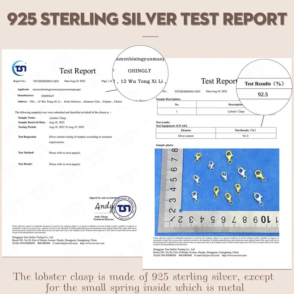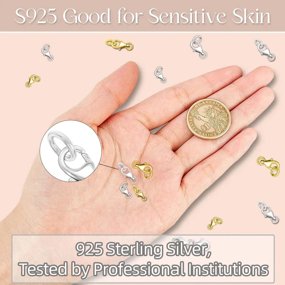OHINGLT 925 Sterling Silver Lobster Claw Clasp with Closed Jump Rings,Necklace Clasps and Closures Suitable for Jewelry Making Necklaces Bracelet About this item MADE IN ITALY 925 STERLING SILVER: OHINGLT's lobster clasps made in italy 925 stamped,sterling silver is hypoallergenic and nickel free - a good choice for those who have sensitive skin SMALL AND DELICATE: Jewelry clasps approx 0.32 x 0.16 inch (8 x 4 mm);Each clasp comes with two closed jump ring,approx 0.03*0.2in(0.6*4.5 mm),Closed ring is very safted and convenience to use EASY TO USE: The lobster clasp set is not only suitable for repairing broken bracelets, but also has the additional usage of fixing the necklace when you lack the loop, which can make your necklaces and bracelets become complete again PACKAGE CONTENT: 6 Sets of 925 sterling silver lobster claw clasps with 2 closed jump ring attached,which are designed for jewelry making and could match with most necklaces and other styles of accessories, completely meet your replacement needs