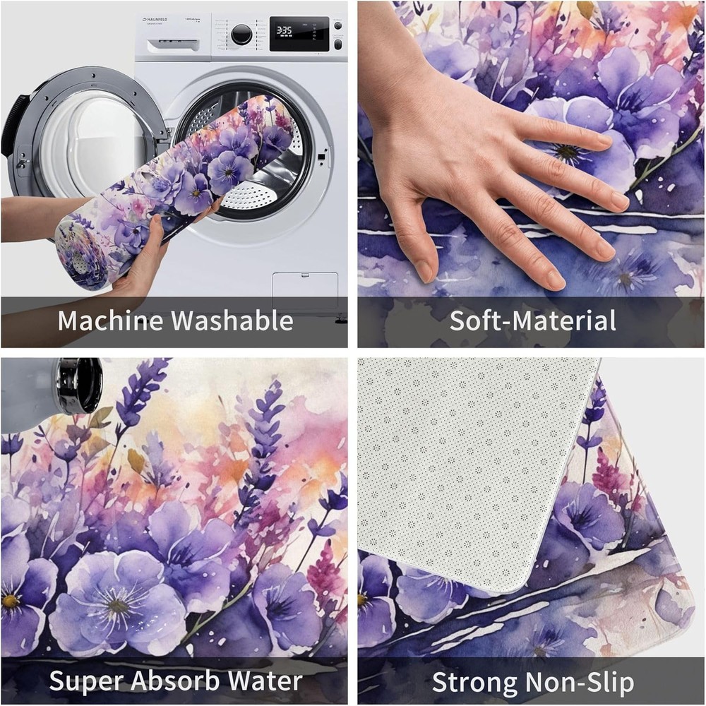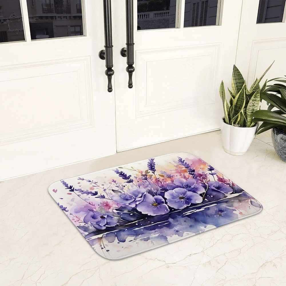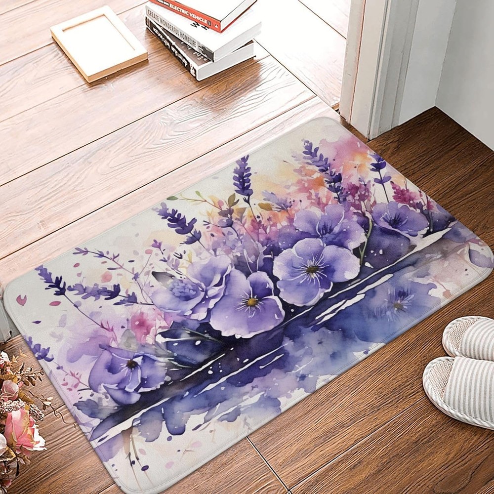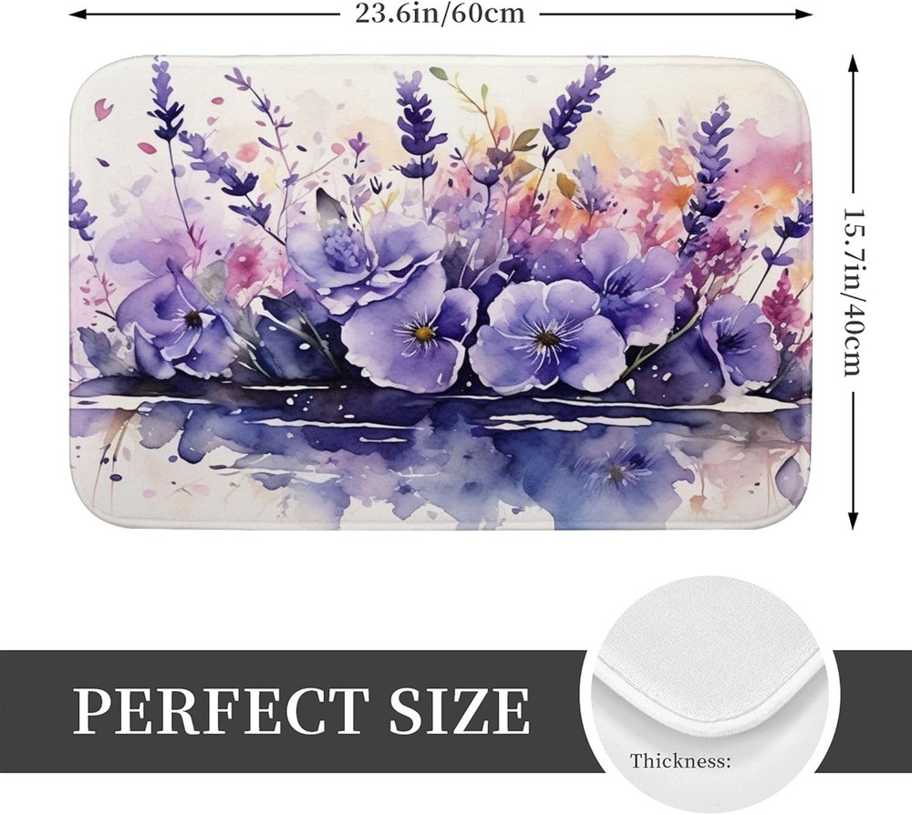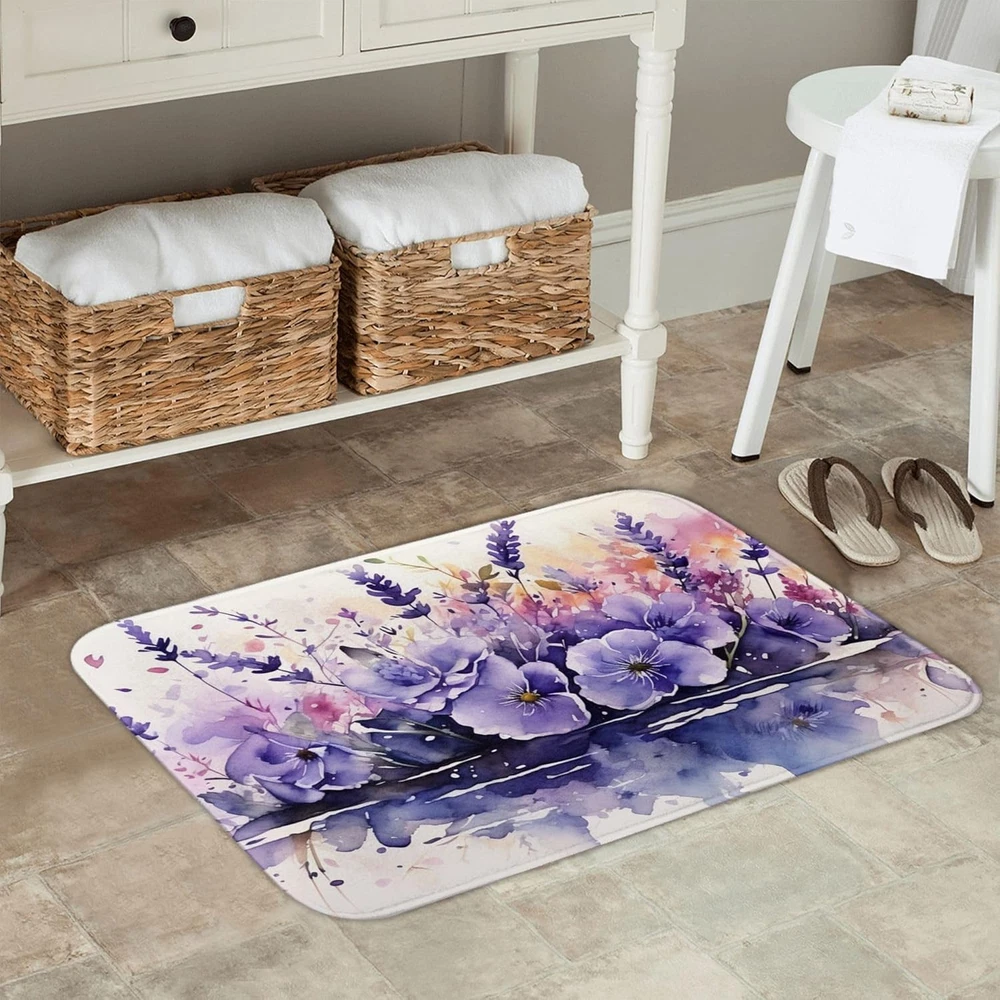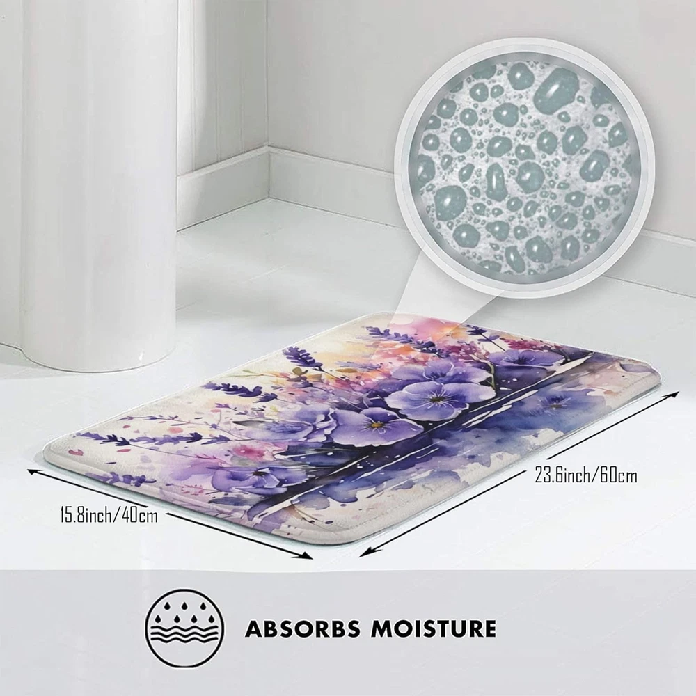 OHORTEB Non-Slip Floral Purple Bath Mat Rug, 24" x 16" Rectangular Design for Style and Comfort