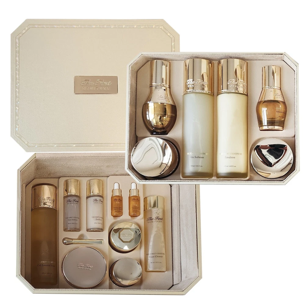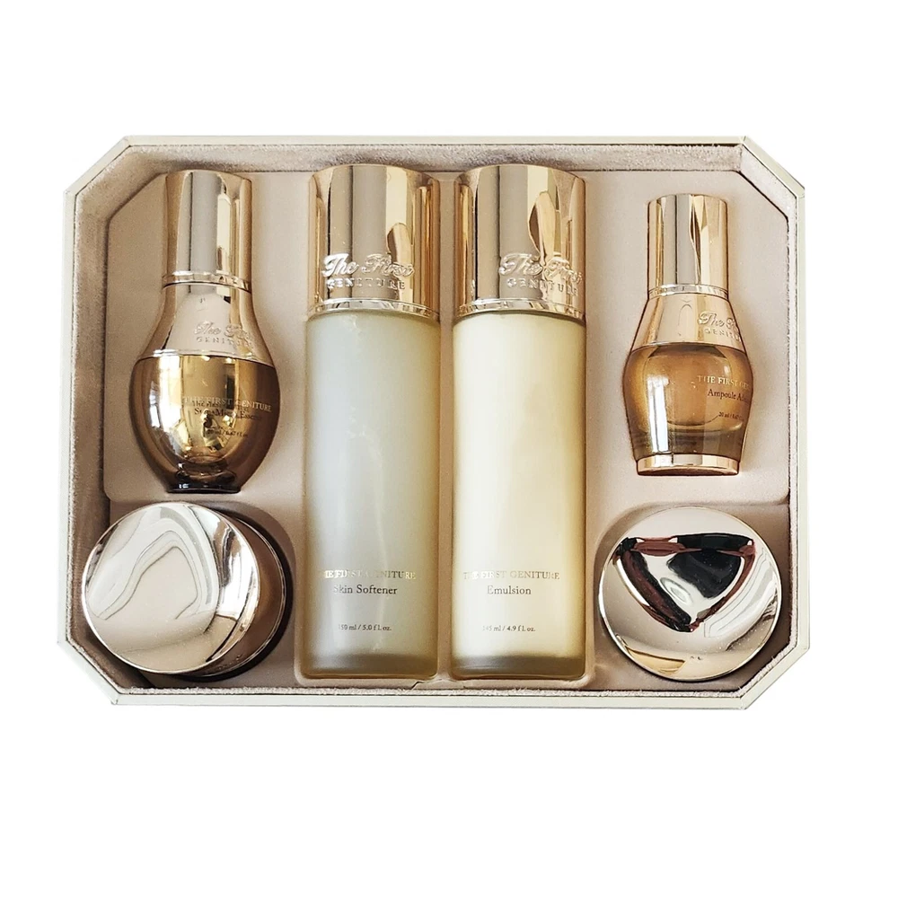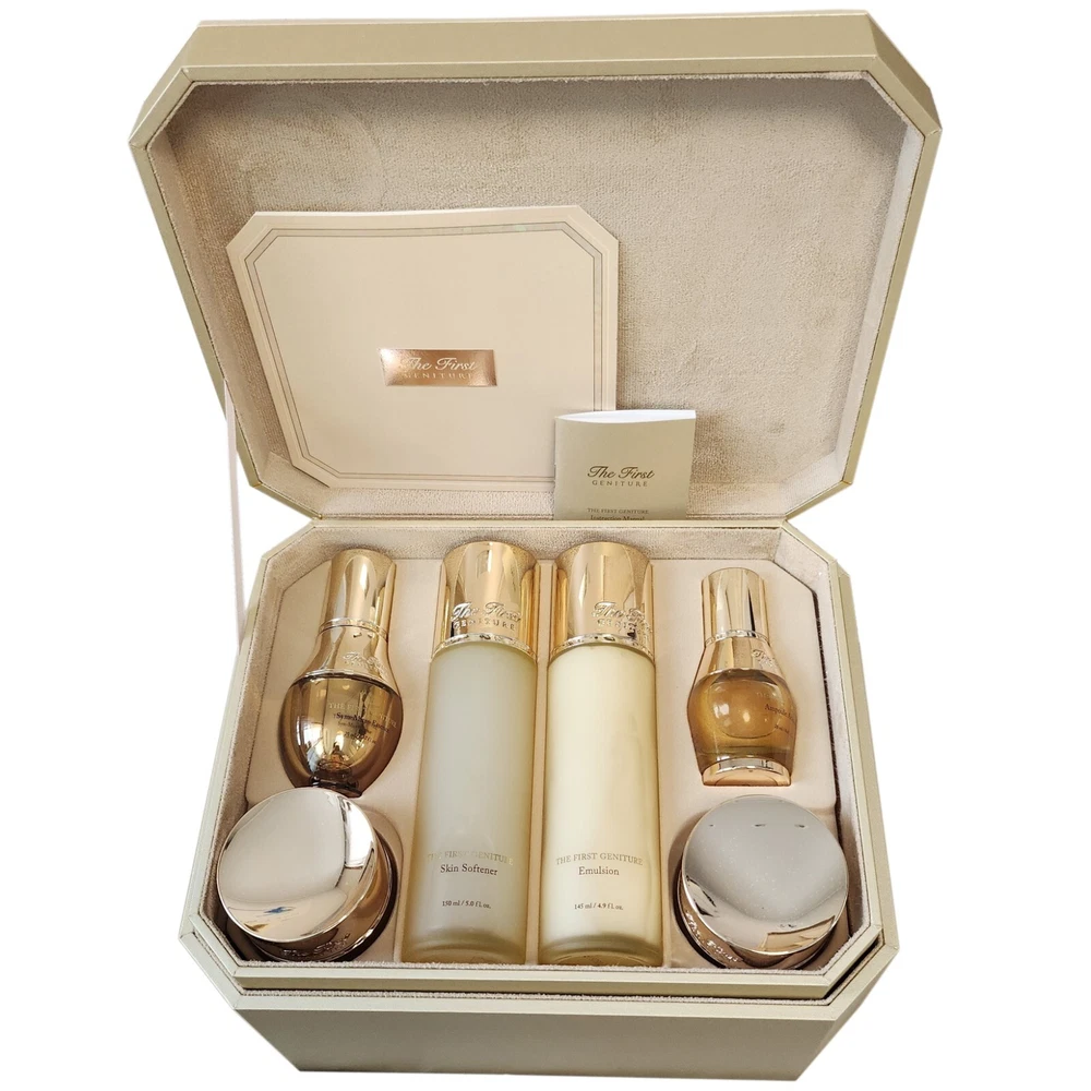 Formulation: Cream, Emulsion, Foam, Lotion, Serum Skin Type: All Skin Types Active Ingredients: peony extract, Transkin EGF/hGF Features: Contains Plant Stem Cells gtin13: Does not apply Period After Opening (PAO): 12M Product Line: OHUI The First Geniture Department: Women Ingredients: peony extract, Transkin EGF/hGF Body Area: Face Expiration Date: 2027 Size: Jumbo/Family Pack Set Includes: Cleanser, Day & Night Treatment, Moisturizer, Regenerating, Rejuvenation, Restructuring, Skin Repair, Toner Volume: Family Set Country/Region of Manufacture: Korea, Republic of Brand: O HUI UPC: Does not apply Main Purpose: Age-Defying, Age Spots, Early Signs of Aging, Firming, Lifting, Nourishing, Regenerating, Wrinkles Type: Special Set