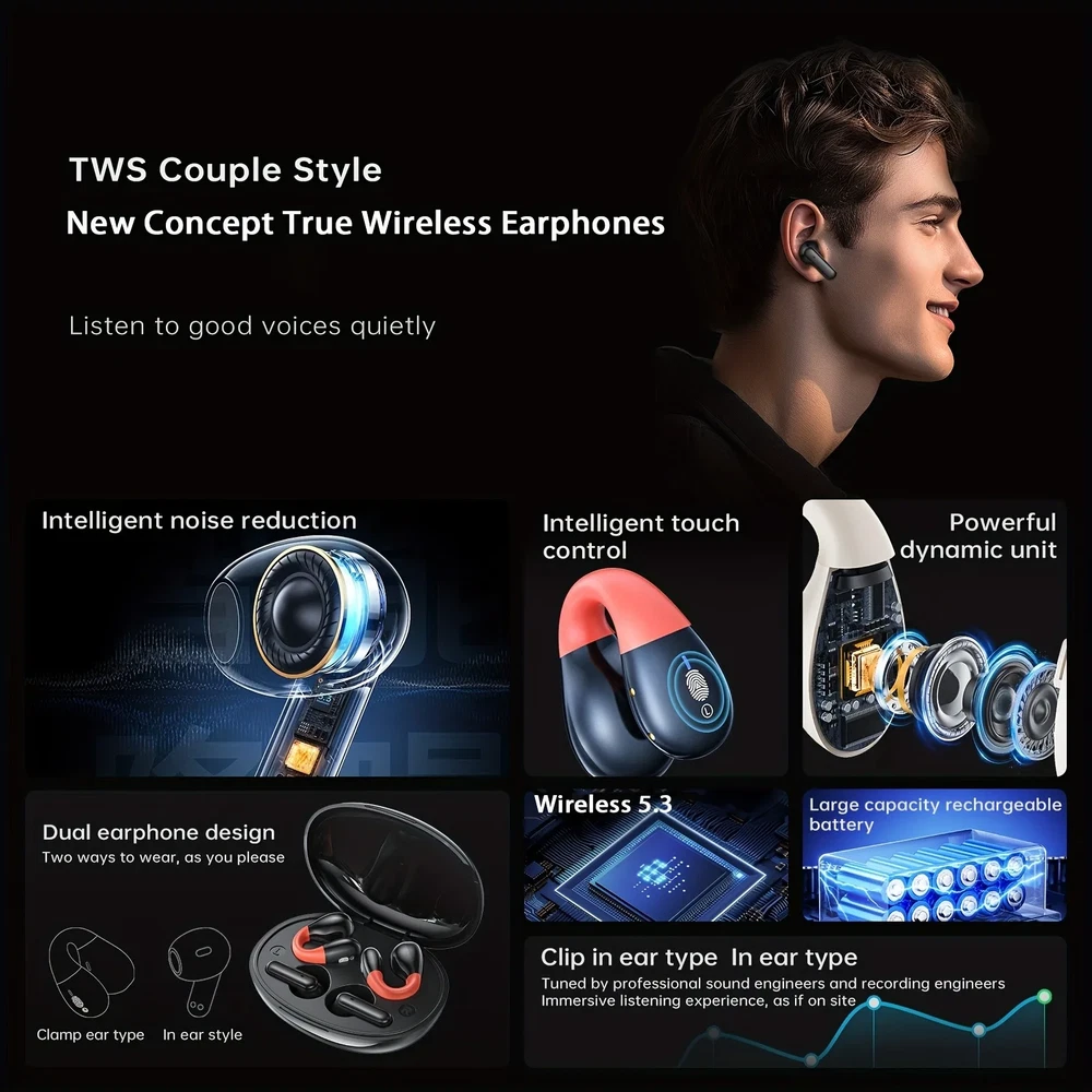 OKCSC 2-in-1 TWS OWS Wireless Bluetooth Earphones for Sports with Smart Noise Cancellation