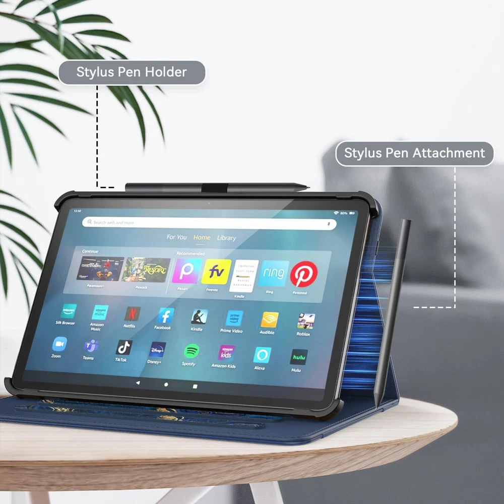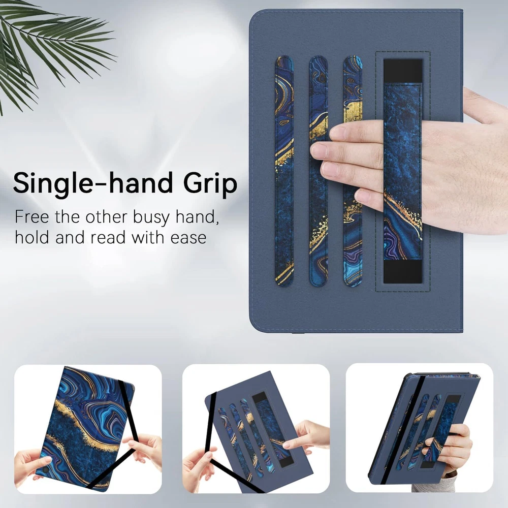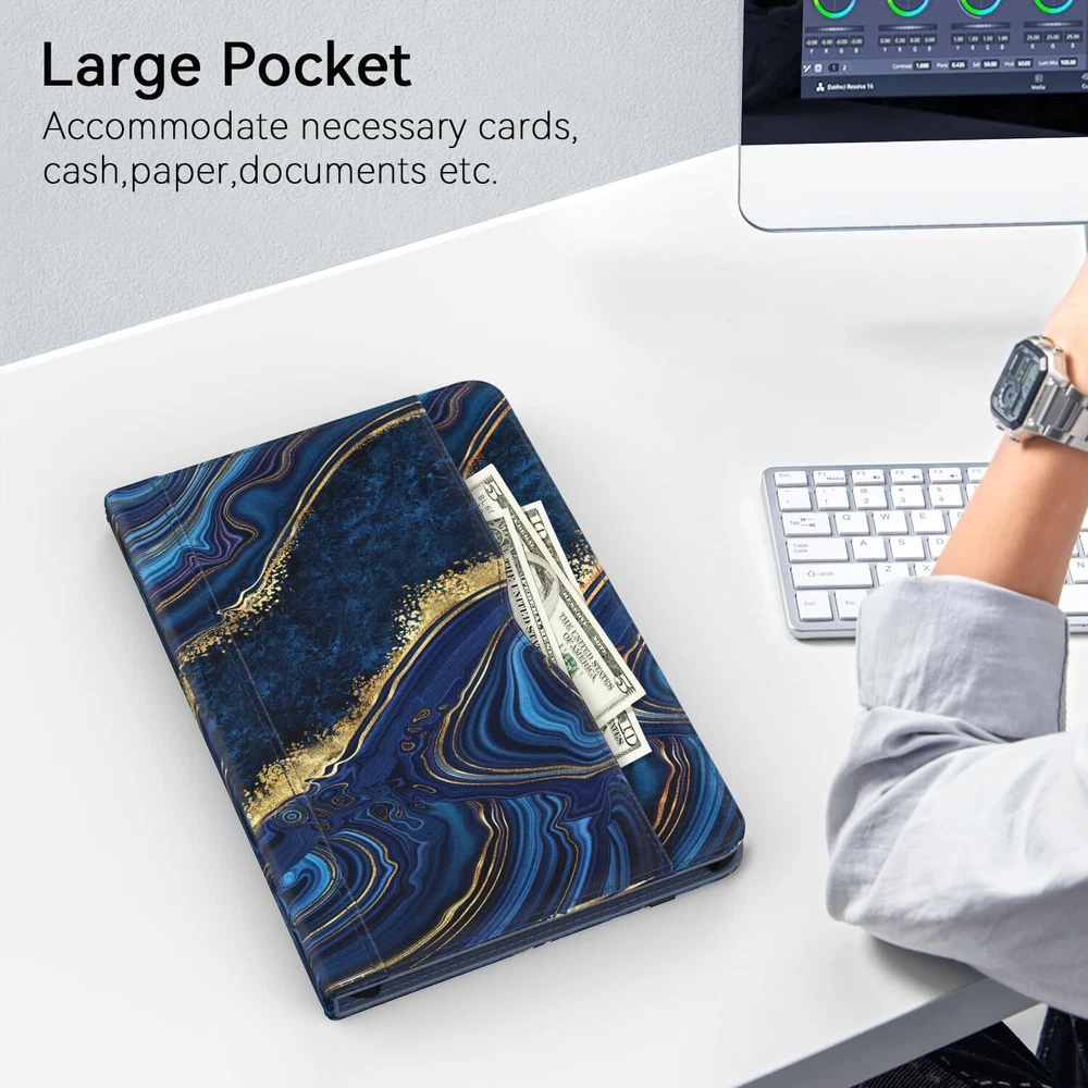 OKP forTablet 11 Case (13th Generation, 2023 Dark Blue Marble Product Details Package Dimensions: 10.59 x 6.77 x 1.02 inches Item Weight: 10.2 ounces Special features: Adjustable Stand Anti slip Auto Sleep/Wake Magnetic Closure Card Slots Scratch Resistant Form Factor: Case Color: Dark Blue Marble Manufacturer: OKP Brand: OKP Compatible Devices: Tablets Shell Type: Hybrid 【Full Protection】:The tablet case is made of high quality PU leather exterior + soft microfiber lining + hard PC back shell. Touching comfortable and providing comprehensive protection for 11 tablet, effectively preventing scratches, shocks, drops and impacts. 【Built-in wrist strap】 :The case with built-in wrist strap so you don't worry about your Kindle 11 tablet falling when reading. The interior hand strap gives you a comfortable single-handed use experience. Enjoy your reading time. 【Multiple Angles】 - Provides three angles for your tablet 11 to meet your viewing and typing needs, freeing your hands for other entertainment activities. 【Auto Wake/Sleep】 - Built-in magnetic strip, secures the case closure, easy to snap on and off. It auto wakes or sleep when you open/close it. Protects and extends battery life.