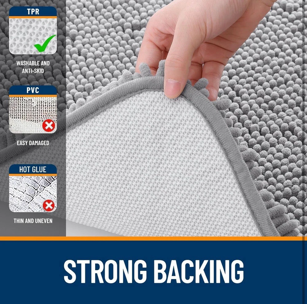 Soft and Plush Chenille - Wrap your feet in the softest, coziest chenille, creating a warm haven for you, your family, and even your furry friends. The plush pile not only pampers tired feet but also keeps toes delightfully toasty. Ultra Absorbent - Meet OLANLY's absorbent bath rug with dense chenille, keeping floors clean when you step out of the bath or shower. Instantly dry your feet on this shaggy rug, protecting your floor from water damage. Fade-resistant and Quick-Drying - The premium microfiber fabric in our rugs isn't just ultra-absorbent—it also dries quickly. These bathroom mats are a breeze to clean, and their fade-resistant quality ensures that you can machine wash and dry them as often as needed. Long-lasting and Sturdy - Our bath mat features a textured rubber backing for stability, surpassing the durability of other brands using PVC or hot glue. Unlike traditional materials, our TP Rubber Backing is engineered to withstand repeated washes without compromising its integrity. WARNING: Water under the bathroom rug can cause it to slip. Keep bottom of the bath rug dry! Multi-Purpose Comfort - Elevate your bathroom experience with OLANLY's soft and luxurious Chenille Bath Rug. Versatile enough for use in the bath, in front of the sink, or anywhere in your home where you desire toe-pampering comfort. Available in a variety of colors and sizes to complement your bathroom design. A perfect addition to your bathroom, vanities, holiday homes, master bathrooms, children's bathrooms, and guest suites.