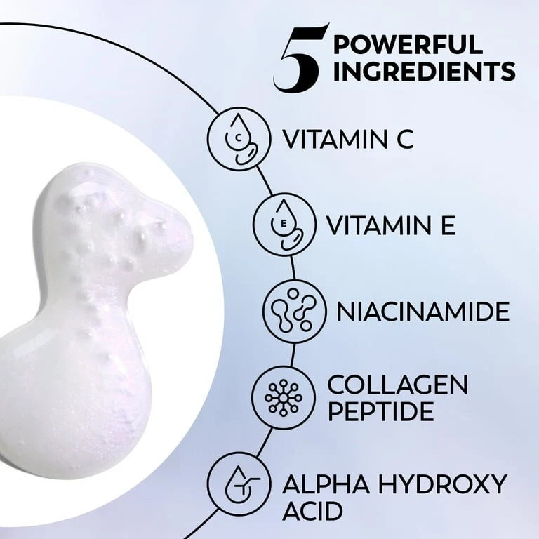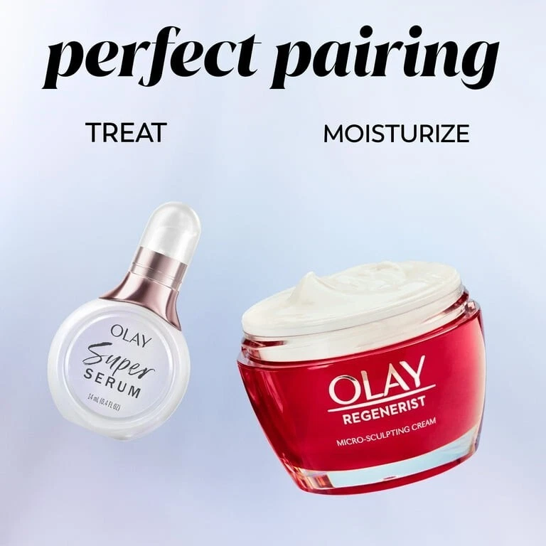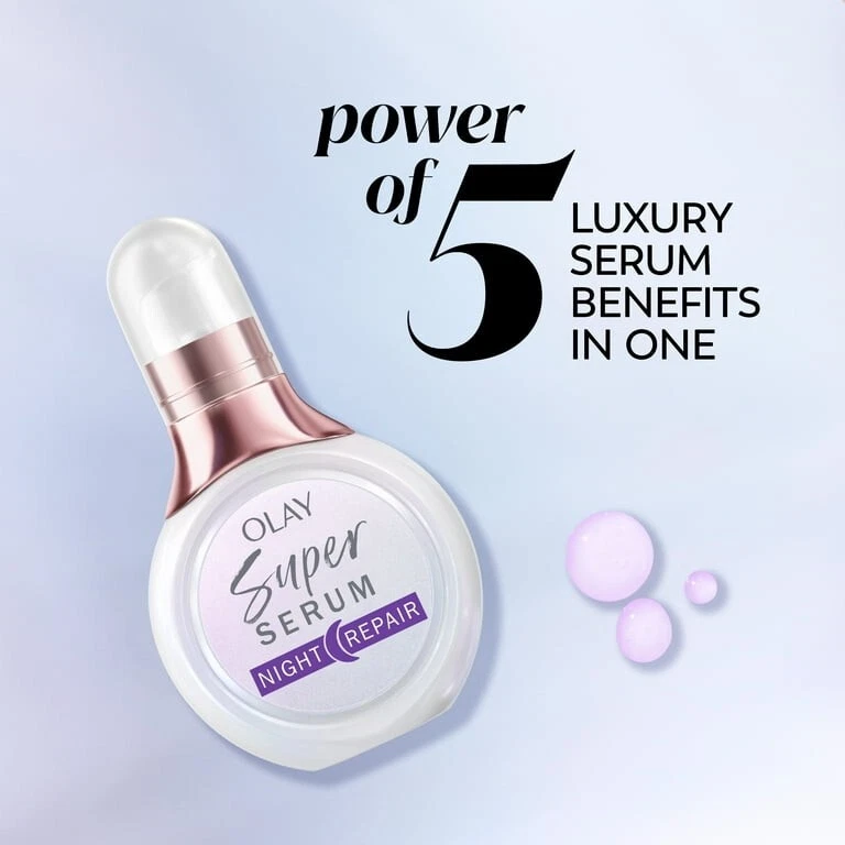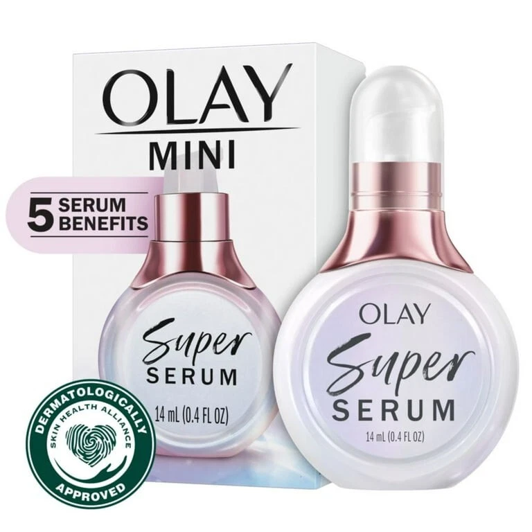 Product details Take your skin care routine to a new level with Olay Skin Care Super Serum 5-in-1 Lightweight Face Serum, Trial Size, 0.4 fl oz, a powerful yet lightweight formula that will leave your skin looking healthier from day 1. Even on the go. What makes our Super Serum face serum so super? By combining the power of five ingredients into one little bottle, our formula provides anti-wrinkle and hydration benefits for skin that is firmer and has better texture. Olay Skin Care Super Serum 5-in-1 Lightweight Face Serum absorbs quickly without leaving behind a sticky or tacky feeling. And you’ll instantly notice 24 hours of hydration, more even-looking skin in two weeks, and your visible lines smoother in one month. Plus, this anti-aging serum is clinically tested and proven, because great skin care is our superpower. Olay Skincare Super Serum 5-in-1 Lightweight Face Serum, Trial Size 0.4 fl oz 5 INGREDIENTS IN 1 FACE SERUM: Elevate your skin care with niacinamide, vitamin c, collagen peptide, vitamin E, and AHA LIGHTWEIGHT FORMULA: Olay Skin Care Super Serum 5-in-1 Lightweight Face Serum and Eye Serum doesn’t leave behind a sticky or tacky feeling LONG-LASTING HYDRATION: Get 24 hours of hydration instantly with Olay Skin Care Super Serum 5-in-1 Lightweight Face Serum MORE EVEN SKIN TONE: Use daily as part of your skin care routine for better skin texture and more even tone in just two weeks HEALTHIER-LOOKING SKIN: Smooth visible lines in just one month