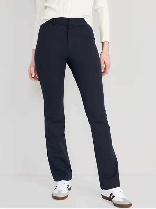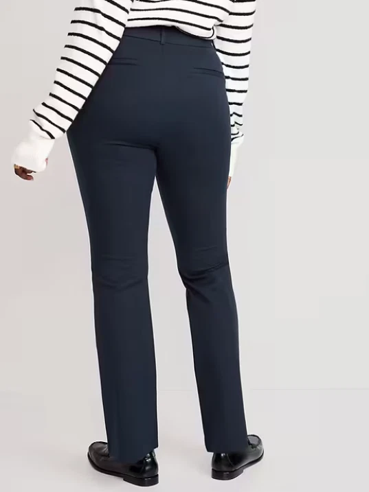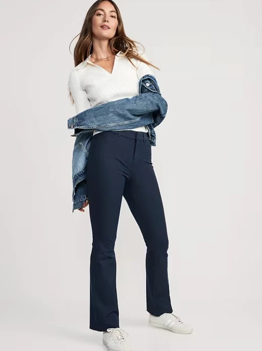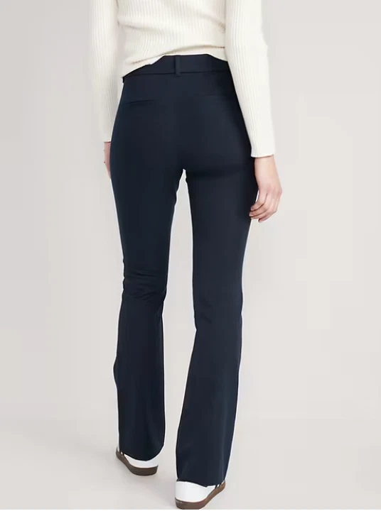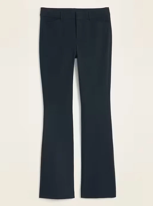 NEW WITH TAGS ~ OLD NAVY HIGH-WAISTED PIXIE FLARE PANTS RETAIL PRICE $49.99 ~ SOLD OUT ONLINE Color: Navy Blue Size: 12 Product Details: The stretchy profesh pant you love, with a mini flare. Belt loops Hook-and-bar closure Interior button Zip fly Diagonal front pockets Faux-welt back pockets #611133 Fit & Sizing: Sits at belly button Fitted hip and thigh Flare leg hits below ankle 32" regular inseam 30" petite inseam 36" tall inseam models are approx. 5'9" and wear sizes s (4), l (12), and xl (18) Fabric & Care: soft-brushed twill secret-smooth front pockets hold you in 55% cotton 37% rayon 8% spandex machine wash according to the care instruction label imported