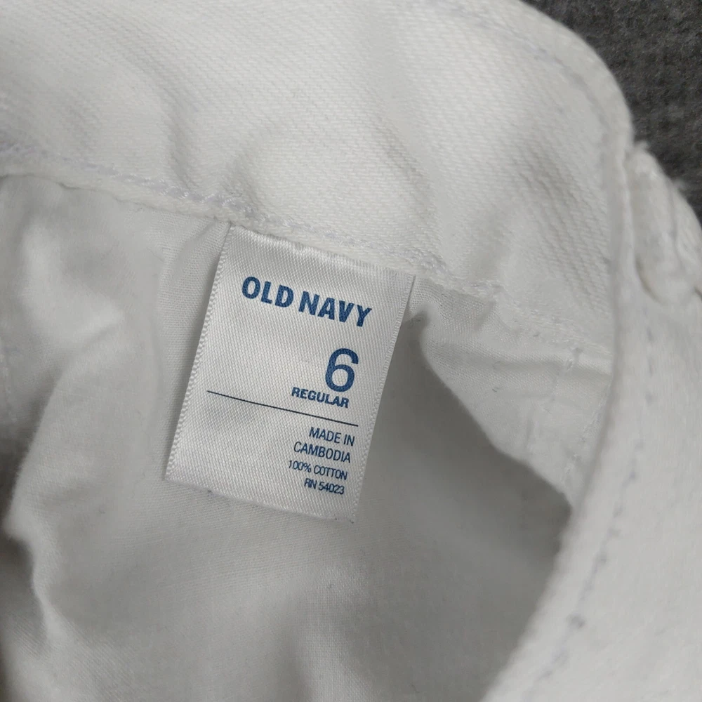 Size Type: Regular Closure: Button Material: Cotton Country/Region of Manufacture: Cambodia Department: Women Skirt Length: Short Fabric Type: Denim Season: Summer, Spring, Fall Theme: Beach, Bohemian, American, summer, casual, classic, coastal, Preppy, y2k Pattern: Solid Style: Mini Accents: Button Personalize: No Features: Pockets Size: 6 Occasion: Casual Color: White Type: Skirt Handmade: No Brand: Old Navy