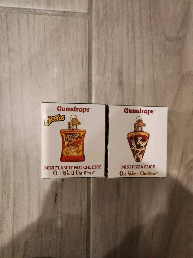Both ornaments measures about 2" each. Crafted with care and precision out of fine glass Blown glass made by skilled glassblowers one at a time Hand-painted and hand-glittered This listing is for both ornaments.