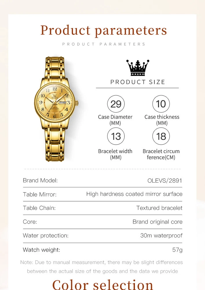 You may also like OLEVS Women's Quartz Watch Calendar Stainless Steel Waterproof Wristwatches 20.0 USD Free shipping OLEVS Women's Quartz Watch Calendar Stainless Steel 3ATM Waterproof Wristwatches 20.0 USD Free shipping OLEVS Quartz Watch Date Week Stainless Steel Waterproof Men's Wristwatches 18.0 USD Free shipping OLEVS Men's Watch Chronograph Calendar Stainless Steel Waterproof Wristwatches 25.0 USD Free shipping OLEVS Quartz Watch Calendar 3 ATM Waterproof Simple Fashion Men's Wristwatches 15.0 USD Free shipping OLEVS Brand Watch Date Week Stainless Steel Waterproof Women's Wristwatches 17.0 USD Free shipping OLEVS Quartz Watch Calendar Stainless Steel Waterproof Men's Wristwatches 21.5 USD Free shipping OLEVS Men's Watch Chronograph Moon Phase Leather Strap Waterproof Wristwatches 19.0 USD Free shipping OLEVS Brand Quartz Watch Calendar Display Waterproof Men's Wristwatches 15.0 USD Free shipping OLEVS Quartz Watch Calendar Stainless Steel Waterproof Women's Wristwatches 19.5 USD Free shipping OLEVS Watch Calendar Diamond Luminous Steel Waterproof Women's Wristwatches 19.5 USD Free shipping OLEVS Brand Quartz Watch Date Week Stainless Steel Waterproof Wristwatches 19.0 USD Free shipping OLEVS Quartz Watch Chronograph Multifunction Watch Waterproof Men's Wristwatches 19.0 USD Free shipping OLEVS Women's Quartz Watch Date Display Waterproof Fashion Wristwatches 20.0 USD Free shipping OLEVS Quartz Watch Date Week Stainless Steel Waterproof Women's Wristwatches 19.0 USD Free shipping OLEVS Women's Watch Stainless Steel Waterproof Business Wristwatches 19.0 USD Free shipping OLEVS Watch Alarm Calendar Week Waterproof Boy Student Wristwatches 19.5 USD Free shipping OLEVS Quartz Men's Watch Chronograph Moon Phase Calendar Waterproof Wristwatches 25.0 USD Free shipping Product Details: Brand model: OLEVS/2891(women's) Bracelet: stainless steel seven-bead bracelet Movement:Original quartz movement Waterproof :3 ATM Watch weight: 57g Style: Business Crown type: Flat-top taper crown Dial shape: round Case material: alloy Strap material: stainless steel Mirror material: coated glass Special features: Noctilucent, calendar week display Movement: Quartz movement, accurate travel time! Strap: Solid steel bracelet, comfortable to wear! Case: vacuum electroplating in the furnace, good quality, long time without fading! Waterproof: 3 ATM waterproof, support daily wash water! Watch buckle: butterfly double button Diameter: 9mm Thickness: 10mm Strap width: 13mm Band circumference:18cm Package includes: Wristwatch*1 watch Box*1 Hot Sale OLEVS Quartz Watch Diamond Stainless Steel Waterproof Women's Wristwatches 19.0 USD 20.0 USD Free shipping 5% off OLEVS Man's Watch Chronograph 42mm Stainless Steel Waterproof Wristwatches 25.64 USD 26.99 USD Free shipping 5% off OLEVS Quartz Watch Calendar Leather Strap Waterproof Fashion Men's Wristwatch 16.62 USD 17.5 USD Free shipping 5% off OLEVS Quartz Watch Calendar Stainless Steel Waterproof Women's Wristwatches Gift 22.79 USD 23.99 USD Free shipping 5% off OLEVS Quartz Men's Watch Chronograph Moon Phase Calendar Steel Wristwatches 31.0 USD Free shipping OLEVS Quartz Watches Calendar Stainless Steel Waterproof Women's Wristwatches 20.9 USD 22.0 USD Free shipping 5% off OLEVS Brand Quartz Watch Stainless Steel Strap Waterproof Men's Wristwatches 24.69 USD 25.99 USD Free shipping 5% off AILANG Men's Mechanical Watch Moon Phases Waterproof Tourbillon Wristwatches 76.0 USD 80.0 USD Free shipping 5% off OLEVS Brand Watch Waterproof Sports Couples Student Electronic Wristwatches 22.8 USD 24.0 USD Free shipping 5% off OLEVS Quartz Watch Calendar Stainless Steel Waterproof Women & Men Wristwatches 19.0 USD 20.0 USD Free shipping 5% off OLEVS Brand Quartz Watch Calendar Diamond Waterproof Women's Wristwatches 20.9 USD 22.0 USD Free shipping 5% off OLEVS Automatic Mechanical Watch Calendar Waterproof Women's Wristwatches 56.05 USD 59.0 USD Free shipping 5% off OLEVS Man's Watch Chronograph Diamond Date Moon Phases Waterproof Wristwatches 21.85 USD 23.0 USD Free shipping 5% off OLEVS Quartz Watch Calendar Stainless Steel Waterproof Women's Wristwatches 23.99 USD Free shipping AILANG Watch Tourbillon Mechanical Wristwatches 5 ATM Waterproof Men's Watch 298.0 USD Free shipping OLEVS Men's Watch Chronograph Calendar Stainless Steel Waterproof Wristwatches 31.0 USD Free shipping OLEVS Quartz Watch Chronograph Calendar Moon Phase Waterproof Men's Wristwatches 24.0 USD Free shipping OLEVS Man's Watch Chronograph Luminous Stainless Steel Waterproof Wristwatches 27.07 USD 28.5 USD Free shipping 5% off Shipping Policy: We have strong shipping partners, and globally, our packages are expected to arrive in 7-15 days, and in very few areas more than 20 days. Return Policy: If it is confirmed that the product is seriously damaged, we will provide replacement or full refund. If the product parts are damaged, we will issue replacement parts or partial refund depending on the degree of damage. Contact us: If there is any problem with the product, please contact us in time and we will give you a satisfactory solution. thank you