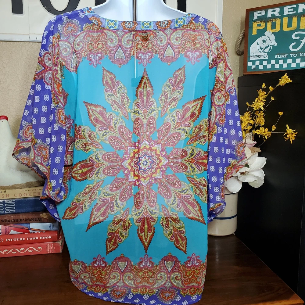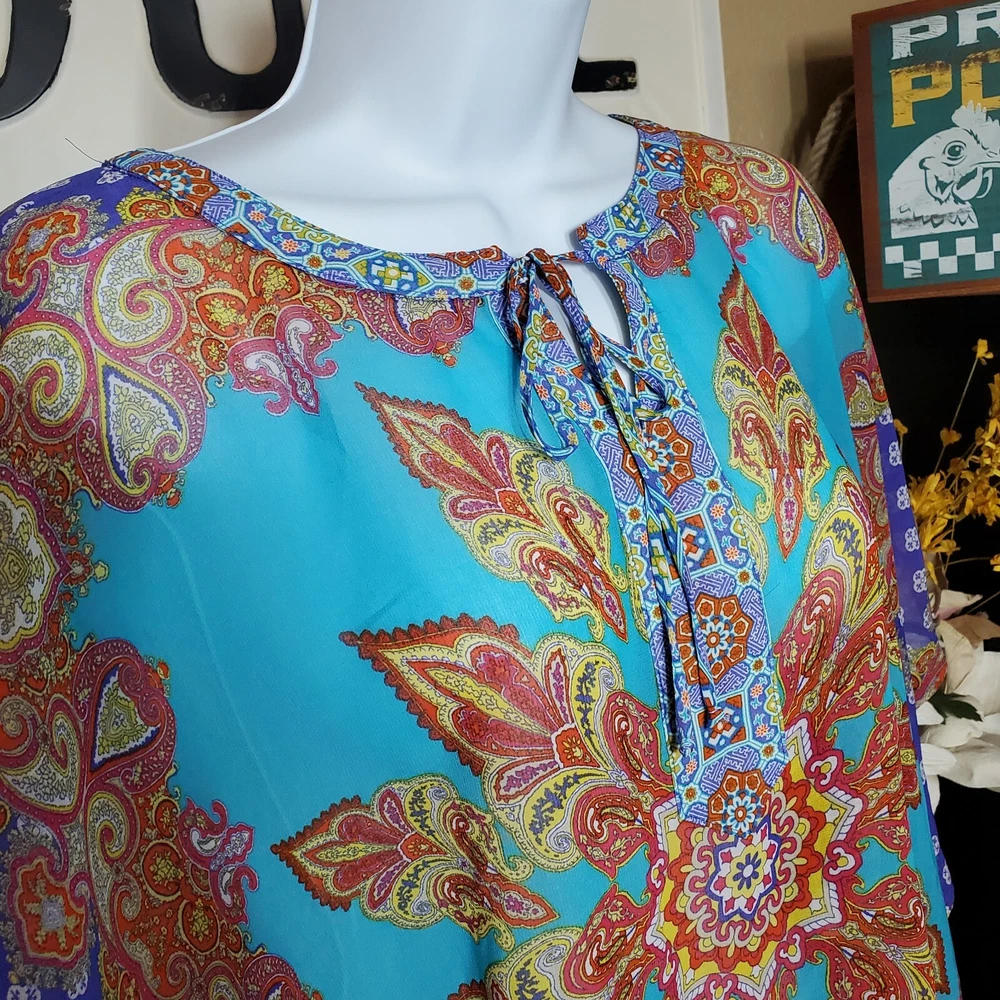 OLIVE HILL SHEER MULTICOLORED BOHEMIAN STYLE TUNIC BLOUSE SIZE S Olive Hill by Anthropologie 100% polyester Excellent condition. No stains, rips, or tears. Thank you for looking! ITEM 30