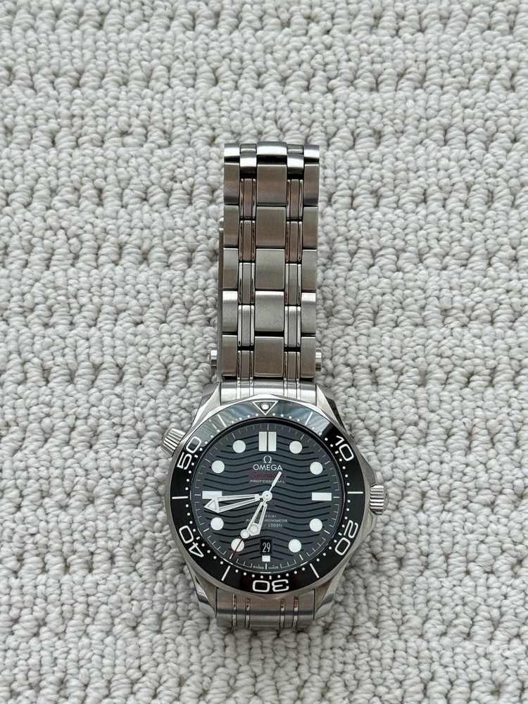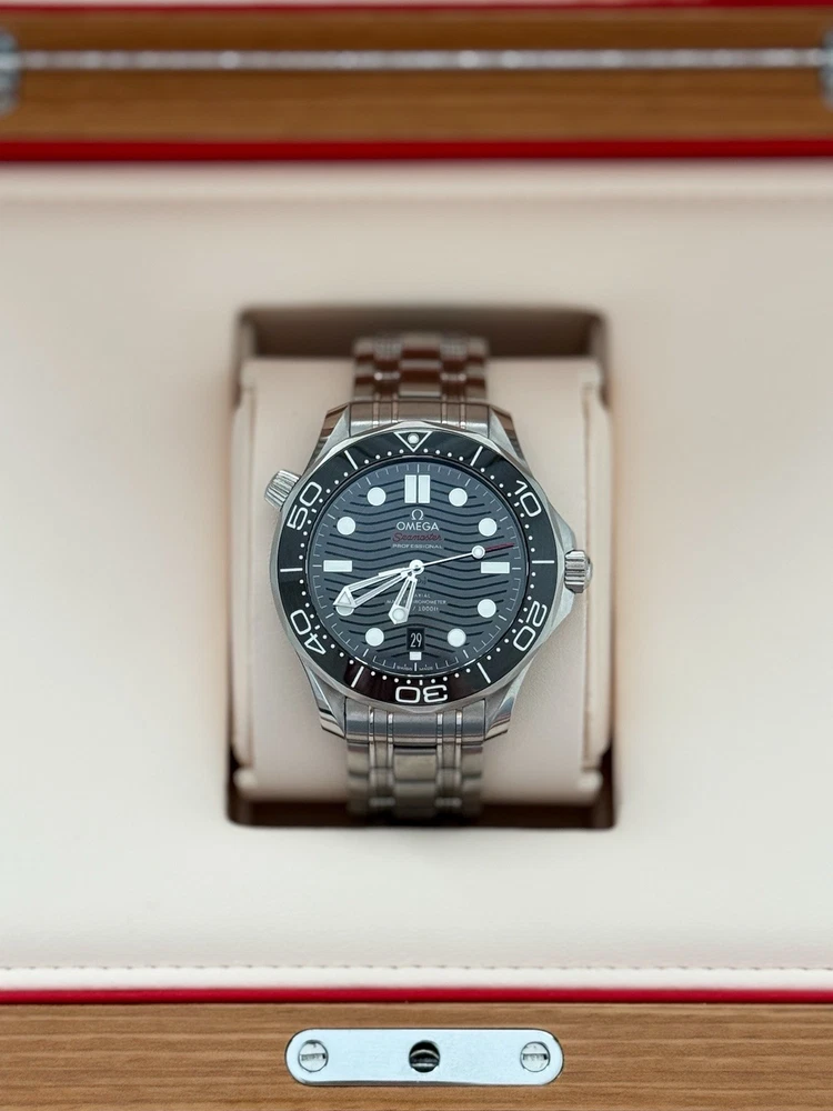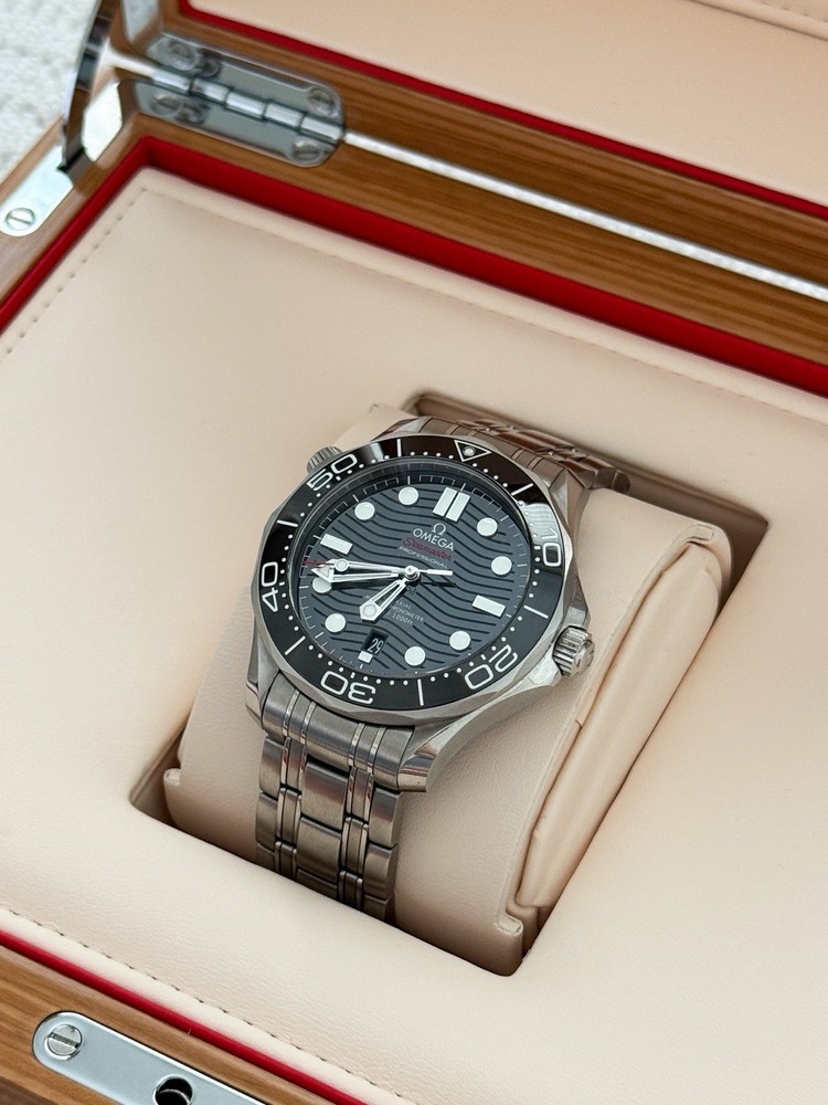 Absolutely love this Seamaster! The black wave dial is stunning, and the 300m water resistance gives me peace of mind whether swimming or diving. The stainless steel case and bracelet feel premium, and the co-axial movement keeps it accurate. Got it preowned in excellent condition—such a smart buy for a high-end Swiss watch. Wears comfortably and gets compliments every time!