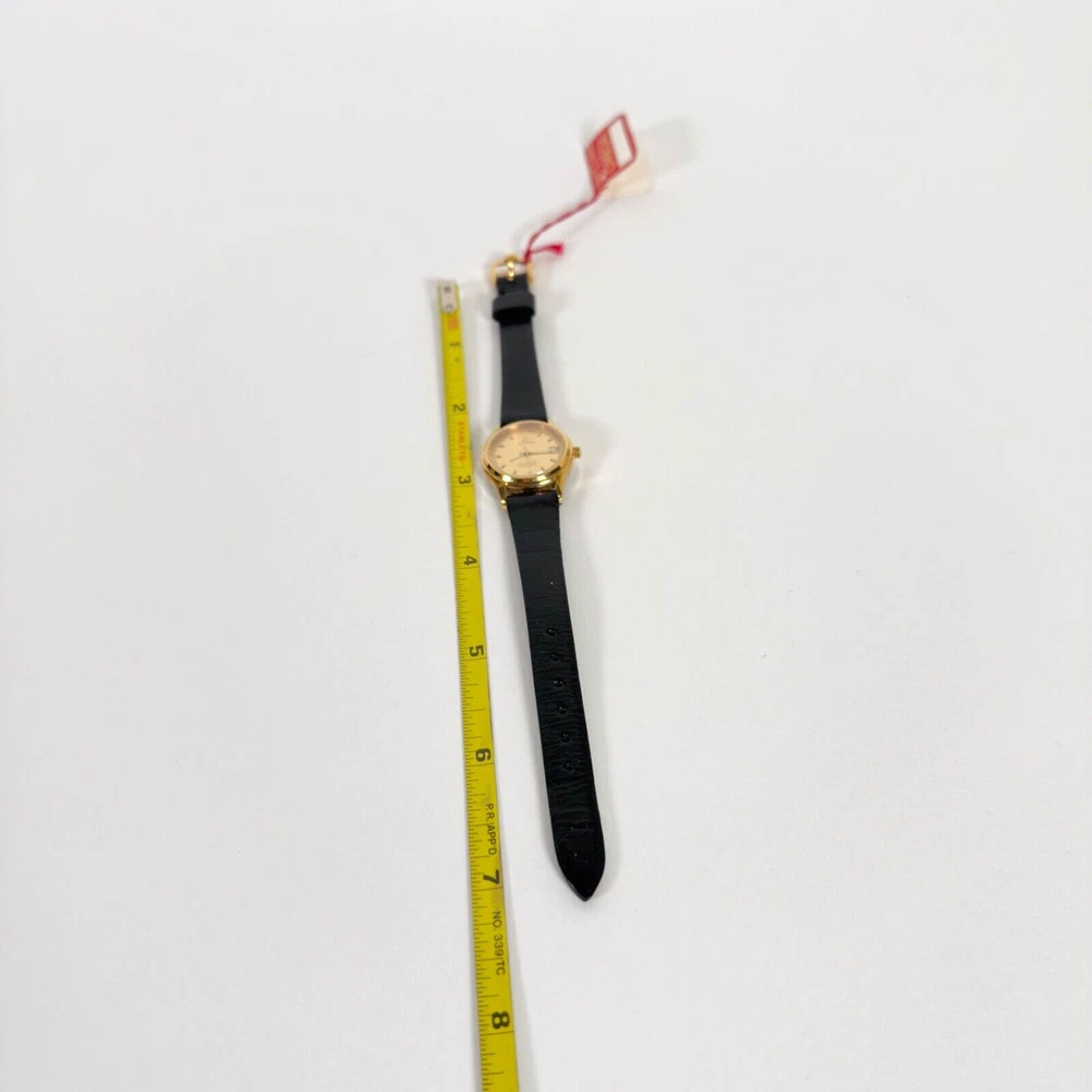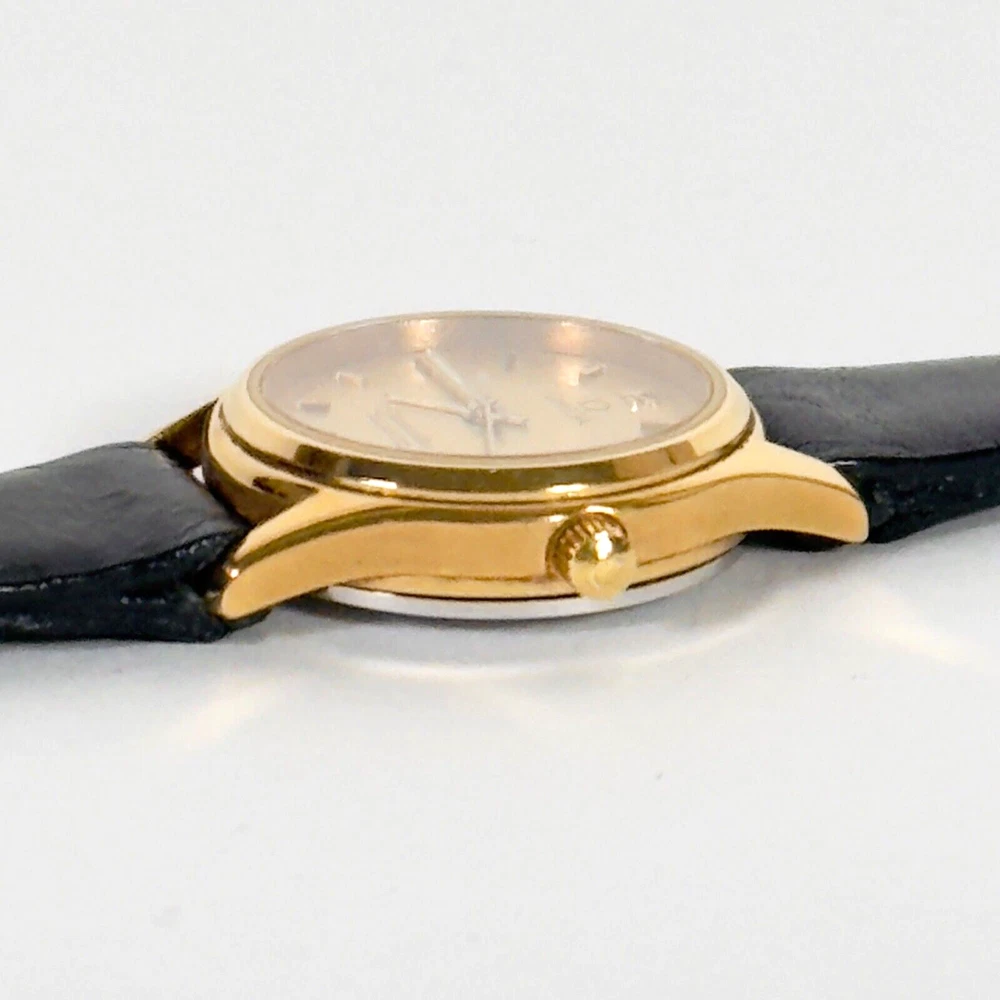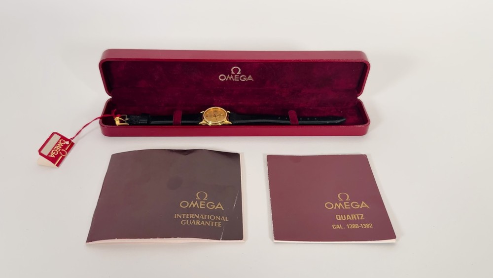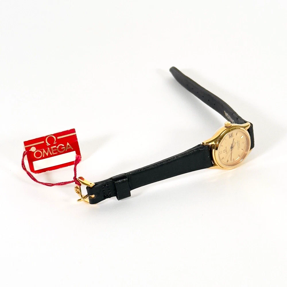 OMEGA Seamaster 596.0044 "BREST" | 18K GP Ladies Watch | Champagne Gold Dial | 1983 | SET Brand: Omega Model: Seamaster “BREST” Reference: 596.0044 Movement: Quartz Caliber: 1380 Jewels: 7 Dial: Champagne Gold Case Diameter: 23mm (excluding crown) Crown: Omega 18K Yellow Gold-Plated, Signed (Ω Logo) Strap: Omega Black Leather Strap, Swiss Made, 12mm/10mm Buckle: Omega 18K Yellow Gold-Plated Tang Buckle, 10mm ( Marked AW Logo, Swiss, Plaque G Hallmarks ) Year: Circa 1983 Serial Number: 45**46 Accessories Include: – Omega Burgundy Presentation Box – Omega 1380 Movement Manual – Omega International Guarantee (1983) – Omega Hanging Tag Condition: Excellent working condition, showing signs of wear consistent with its 42-year age. Dial and case remain well-preserved, and the watch retains its classic vintage charm. This complete set is ideal for collectors seeking an elegant 1980s Omega ladies’ piece with original documentation and packaging. Please review all photos carefully as they are part of the description. We respond promptly to all inquiries. If you have any questions, don’t hesitate to reach out. If anything is less than perfect, please contact us before leaving feedback. We’re here to help. Thank you for choosing ION Watches. We sincerely appreciate your business.