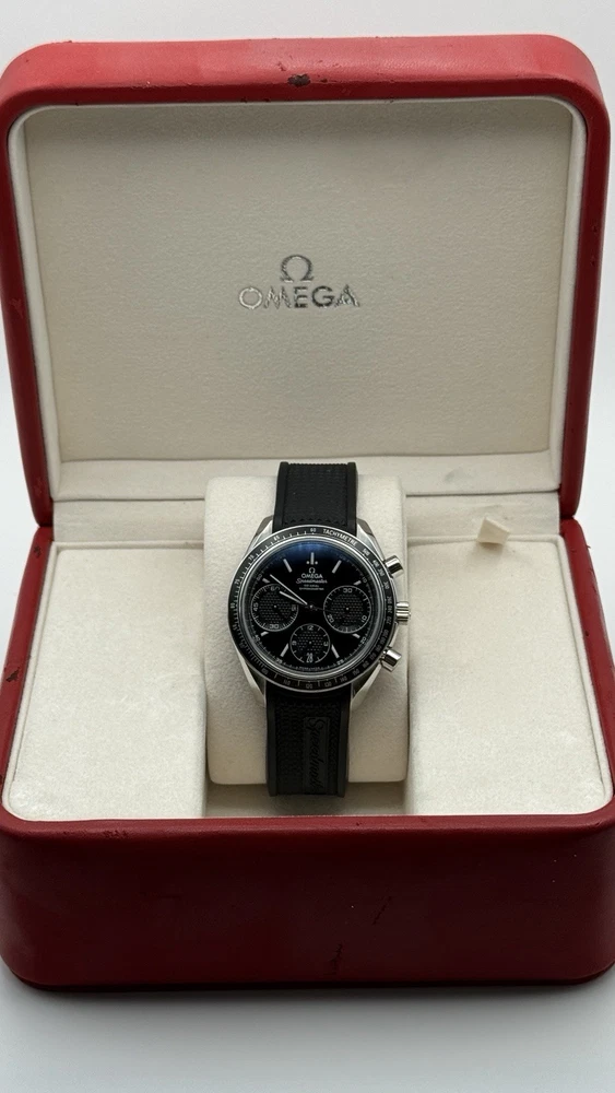 The OMEGA Speedmaster Racing Black Dial Men’s Watch 326.32.40.50.01.001 40mm is a sophisticated and stylish timepiece designed for men. This watch features a black dial with baton indexes, housed in a stainless steel case with a silver color. The watch is water-resistant up to 100 meters and comes with a two-piece rubber strap with a deployant closure for a secure fit. It boasts a mechanical (automatic) movement with 27 jewels and a tachymeter bezel, making it both practical and high-quality. Additionally, it includes features such as chronograph, date indicator, and scratch-resistant sapphire crystal, making it a versatile and reliable accessory for any occasion.