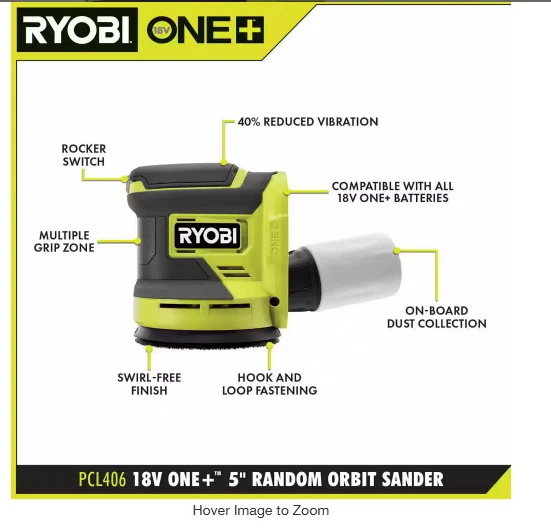 RYOBI 18V ONE+ Cordless 2-Tool Combo Kit: Multi-Tool & 5 in. Random Orbit Sander (Tools Only) RYOBI introduces the 18V ONE+ Cordless 2-Tool Combo Kit , featuring a Multi-Tool and a 5 in. Random Orbit Sander , designed to tackle a variety of demanding applications with ease. The 18V ONE+ Cordless Multi-Tool delivers up to 20,000 max OPM (Oscillations Per Minute) for fast and efficient cutting across multiple materials, including drywall, wood, metal, plastic, and composites. It features the lowest vibration in its class , reducing user fatigue and improving precision. The variable speed dial allows for customized performance, and the ergonomic design with a lock-on button enhances comfort during extended use. The 5 in. Random Orbit Sander operates at 10,000 OPM , ensuring a smooth, swirl-free finish on your work surfaces. Its ergonomic palm grip enhances user comfort, while the on-board dust collection bag keeps your workspace clean. The hook-and-loop accessory fastening system makes it easy to change sandpaper, and the lock-on switch allows for extended operation with less effort. This combo kit is part of the RYOBI ONE+ System , which includes over 300 cordless products that all work with the same battery platform, offering unmatched versatility. Includes: 18V ONE+ Cordless Multi-Tool (PCL430) with a plunge cut blade, finish cut blade, sanding pad, and (3) pieces of sandpaper assortment 18V ONE+ 5 in. Random Orbit Sander (P411) with an assortment of sandpaper of varying grits Operator’s manual 🔹 Battery and charger sold separately 🔹 3-Year Manufacturer's Warranty 🔹 Compatible with Electronic Recycling Programs
