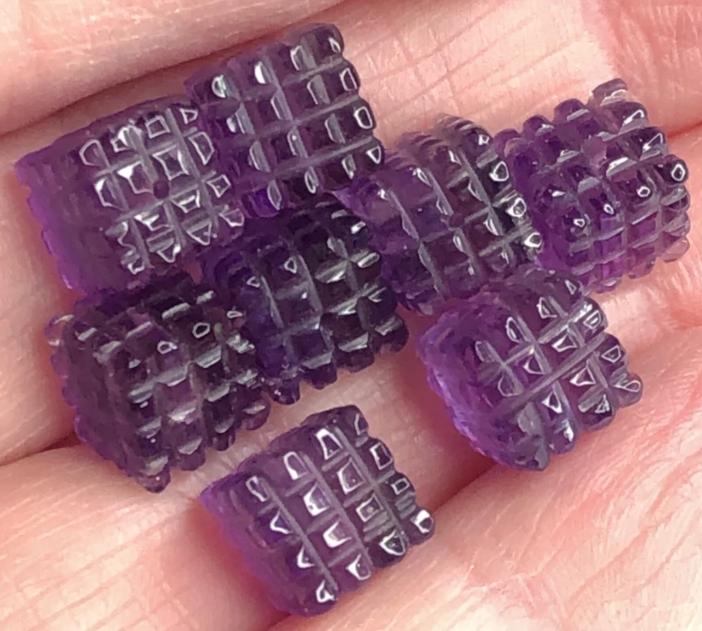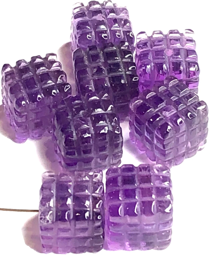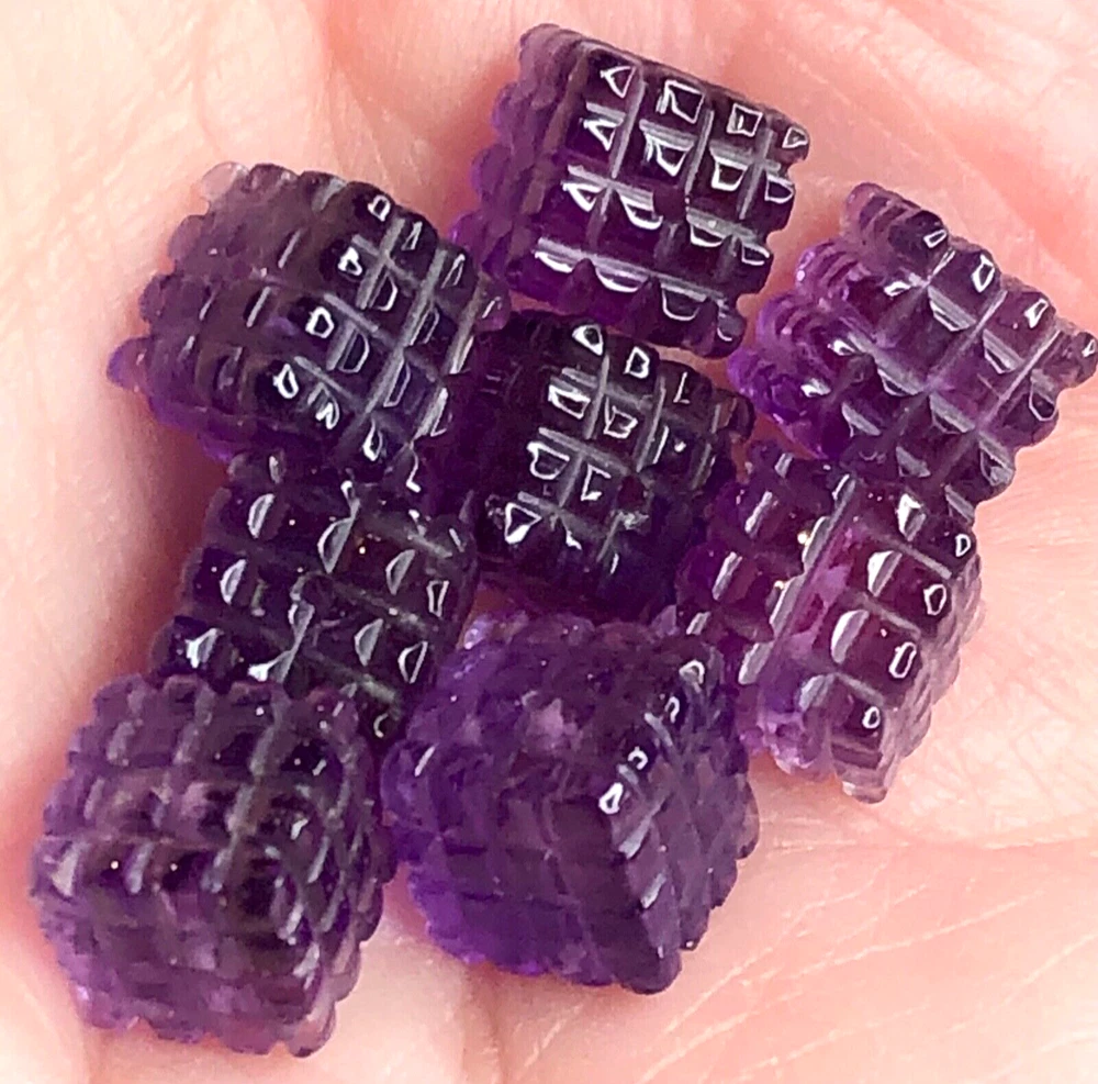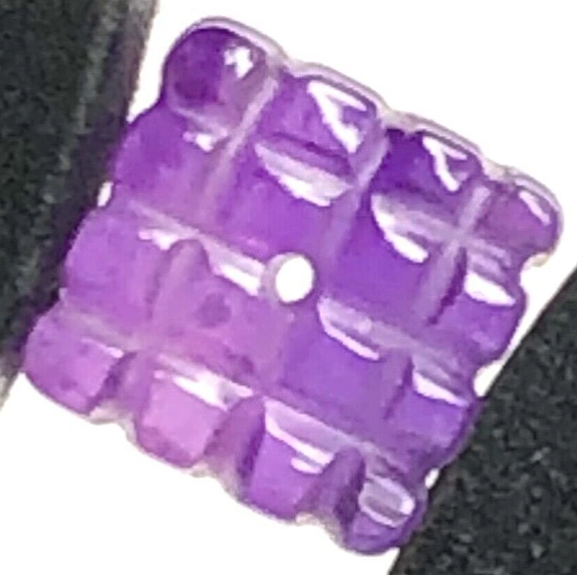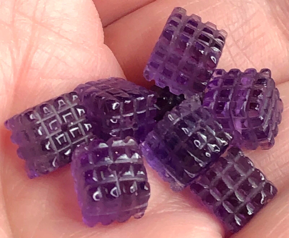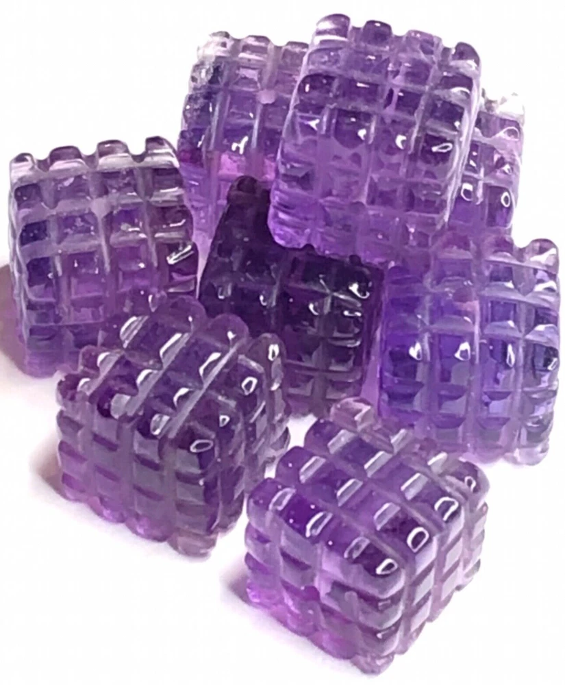 ONE Vintage Hand Carved Amethyst Square Bead ~ Size: 7mm ~ New Old Stock We had these artisan carved amethyst beads created just for us. You will not find them for sale anywhere else! The deep purple hue of the amethyst stones showcase the geometric design carved into each side of the bead. One of these amethyst beads on a chain is perfect simplicity and great for today’s necklace layering trend. Item: Bead or Pendant Material: Amethyst Color: Purple Shape: Square Quantity: 1 Bead Method: Hand Carved Approximate Measurements: Bead 7mm x 7mm Drilled Hole .5mm Condition: New Old Stock Please review our detailed photos and message us with any questions. AMETHYST GEMSTONES: ♥ Increases nobility ♥ Spiritual awareness ♥ Psychic abilities ♥ Inner peace and healing ♥ Healing of body, mind & soul ♥ Meditation ♥ Balance ♥ Relieves stress ♥ Communication Amethyst derives its name from the Greek word ametusthos which means ‘not intoxicated’. Amethyst is present all over the world with some of the most precious deposits being in Greece, Italy, the Middle East, Brazil, Uruguay and North Africa. Amethyst is often used during meditation to provide an overall sense of spiritual balance, it is said to have strong healing and cleansing powers. Amethyst is a powerful and protective stone. Amethyst is a natural tranquiliser, it relieves stress and strain, soothes irritability, balances mood swings, dispels anger, rage, fear and anxiety. Alleviates sadness and grief, and dissolves negativity. Amethyst activates spiritual awareness, opens intuition and enhances psychic abilities. Note: The mystical powers of Amethyst provided here is for entertainment and reference purposes only and is based on centuries of folklore.