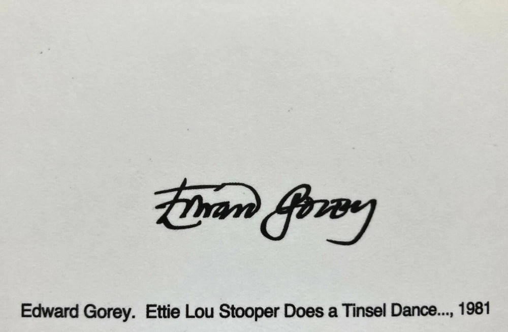 Our buyers' feedback on this item Exceptional customer service thank you very much Brand new and securely shipped - Exactly the card I needed - Thank you very much! My entire purchase experience was exceptional ! Freshattitude was communicative and professional. My order was exactly as described, and delivered within 24 hours. The product is perfect. ONE SINGLE new unused large Christmas/holiday season blank note card with solid white envelope - Artwork from 1981 by Edward Gorey (American, 1925-2000) depicts a woman in a flapper outfit dancing with tinsel while others look on; one man is carrying what appears to be a stack of scrolls - Inscription on front of card: Ettie Lou Stooper does a tinsel dance at a tree-trimming party in Gumsville, Nebraska, Christmas Eve, 1923 - Inside inscription: None (blank inside) - 5 x 7 inches folded; printed on heavy card stock - From a stock of loose cards, sealed in a clear protective sleeve - SAVE $ if you order more than one of the cards in this listing (while supplies last)! To see how much your total would be, add desired number of cards to your cart, then go to your cart - items added to your cart can always be revised (quantity) or deleted. You will not be charged unless and until you check out. Check out our store - We do our best to offer you the most beautiful and extraordinary paper products we can find Save us as a seller - we frequently add new items QUESTIONS? Please don't hesitate to message us SHIPPING: Same or next business day by USPS ground advantage mail with tracking; shipped from a smoke-free environment. We are happy to combine shipping with other purchases from our store if reasonably feasible (in general, does not apply to free-shipping items); just message us. We routinely give partial refunds when appropriate for postage over-payment on multiple greeting card orders from more than one of our listings. PROBLEMS WITH YOUR ORDER? If you have any concerns or issues upon receiving your item, we ask that you message us directly so that a satisfactory solution can be found - We will respond as soon as possible. RETURNS: In the event of a return, buyer must return the item(s) in the same condition as when received. Buyer pays for return shipping, and the original shipping cost will not be refunded. Thanks for looking!