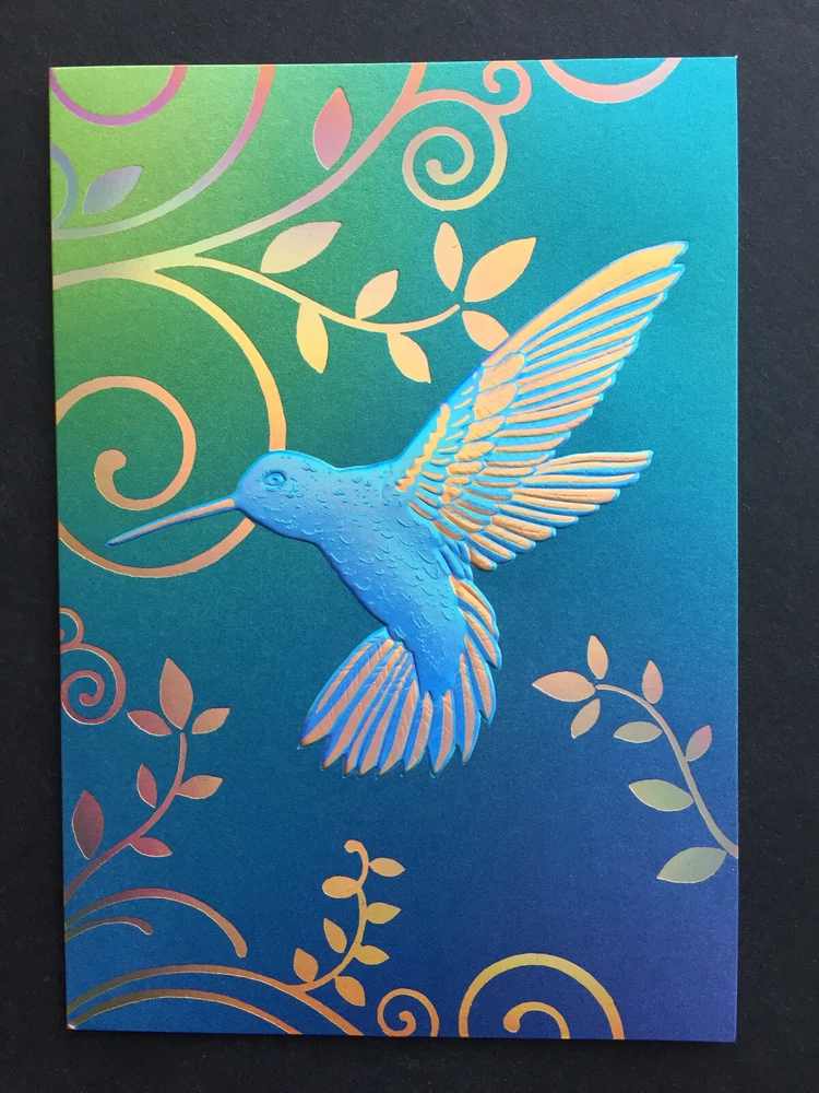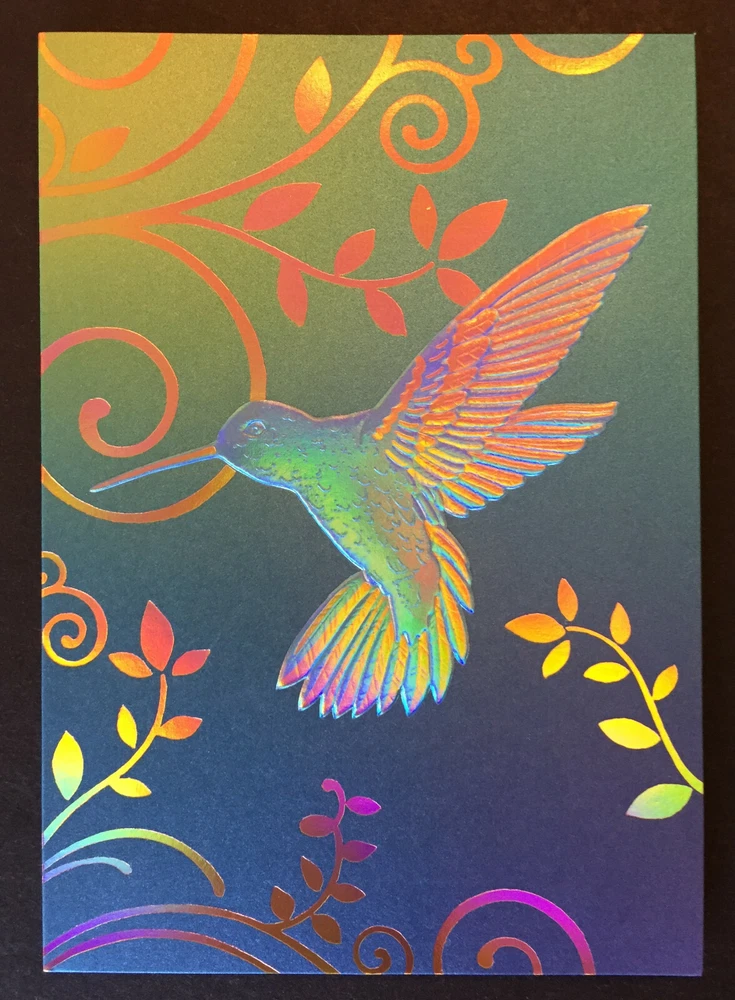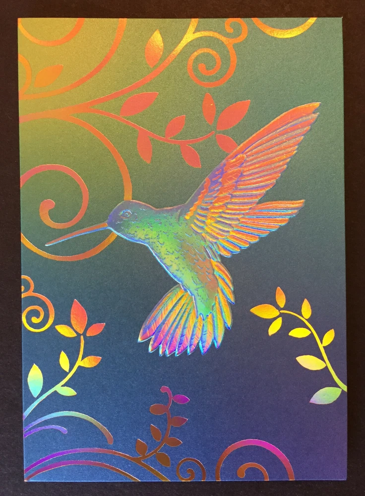 Our buyers' feedback on this item: Papyrus cards are always unusual and of good quality, and this beautiful notecard is a fine example of that. Wonderful selection of cards, and great communication from the seller. Kudos & thanks! :) 5⭐️seller! ✿ GREAT communication & FAST shipping! ✿ BEAUTIFUL card - Thank You! These cards are stunning! Super fast shipping! ONE SINGLE new Papyrus hummingbird blank note card with lined turquoise envelope and embossed gold foil seal - Delight someone by sending a note on this gorgeous card - Printed on heavy card stock with a foil finish that changes colors between blue, green, gold, and fuchsia - depending on the angle of the light - Card is blank inside; folded card measures 4 x 5-3/4 inches - From a stock of loose cards; card will be sealed in a clear protective sleeve before being packed for shipment Check out our store - We do our best to offer you the most beautiful and extraordinary paper products we can find Save us as a seller - we frequently add new items QUESTIONS? Please don't hesitate to message us SHIPPING: Your order will be shipped same or next business day by USPS first class / ground advantage mail. Shipped from a smoke-free environment. We are happy to combine shipping with other purchases from our store if reasonably feasible (in general, does not apply to free-shipping items); just message us. We routinely give partial refunds when appropriate for postage over-payment on multiple greeting card orders placed at the same time from more than one of our listings. PROBLEMS WITH YOUR ORDER? If you have any concerns or issues upon receiving your item, we ask that you message us directly so that a satisfactory solution can be found - We will respond as soon as possible. RETURNS: In the event of a return, buyer must return the item(s) in the same condition as when received. Buyer pays for return shipping, and the original shipping cost will not be refunded. Thanks for looking!