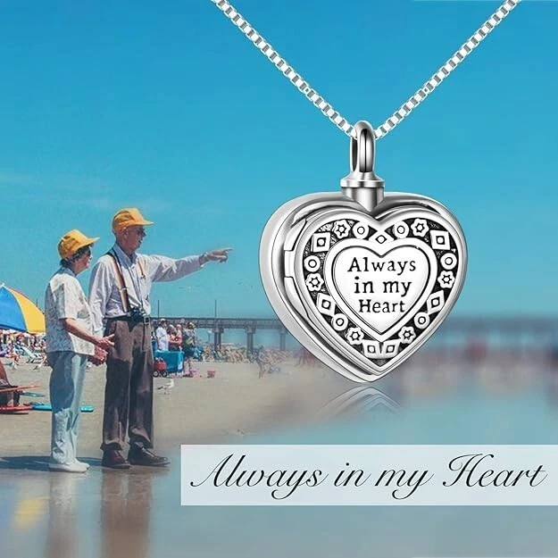 ONEFINITY Sterling Silver Locket for Ashes Always in My Heart Urn Necklace for Ashes Heart Locket That Holds Pictures for Women Ashes Necklace Keepsake Memorial Ash Jewelry MaterialSterling Silver Metal typeSterling Silver Chain typeCable About this item ❤DESIGN CONCEPT❤ keepsake urn locket pendant necklace engraved "Always in My Heart". Screws from the top of urn, you can put little ashes or hair in urn for memorial. And also you can choose 1-2 pictures on the locket to keep herhisits happy look as a cherish memory. Creative and Unique ashes keepsake necklace with picture for family, friends or yourself ❤Urn Necklace❤This urn necklace could be used for human ashes, dog cat ashes, amount of cremated remains, love proverbs, other soul souvenirs or any tiny object you want to keep close to your heart. ❤ MATERIAL❤: The Urn Necklace is Sterling Silver, Nickle Free, Hypoallergenic,never rust, corrode, rust or stain. Urn Pendant size: 22.2 mm*17.4 mm/0.87 Inch*0.68 Inch, Weight:8.2 g, Rolo Chain 18 Inches ❤Urn Jewelry Gift❤ Cremation Jewelry for ashes Dad Mom Husband Son Brother Daughter Sister Grandma Grandpa Aunt Wife, pet's ashes, hair or perfume, memorial cremation ashes keepsake or taste, Stay with you forever . We offer FREE shipping on all orders! . We ship within Five business days of payment, usually sooner. . We use a selection of shipping services such as UPS, FedEx, USPS etc. . We only ship to the lower 48 states, no APO/FPO addresses or PO Boxes allowed. . Local pickups and combined shipping options are not provided at this time. . Your satisfaction is a wonderful reward for our efforts. Please assist us by leaving a positive review if you feel pleased with our service. . In the event that you encounter any difficulties related to your order, please do not hesitate to reach out to us directly through the Messaging system on the Ebay platform. Kindly consider opening a COMPLAINT or a RETURN REQUEST as a last resort, only after all other possible measures have been attempted and we have been unable to provide you with assistance. . We will get in touch with you within 24 hours and make every effort to ensure your satisfaction. . Please rest assured of our service quality.
