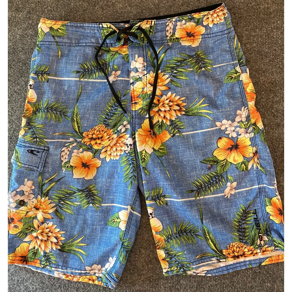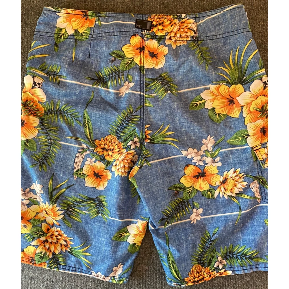 O'NEILL Hawaiian Board Shorts Men 31 Blue Floral/Skulls Surf Swimwear Beach Swim Good pre-owned condition. Note: small stain- top internal liner ( see photos) Additional signs of normal wear may be present. Size: 31 - drawstring & hook/loop closure - style: 44106001X - made in Cambodia (Measurements in photos) Ships FAST & AFFORDABLE - next business day. - All Offers welcome -