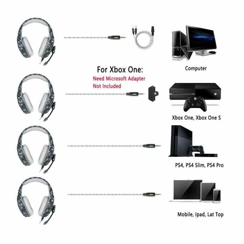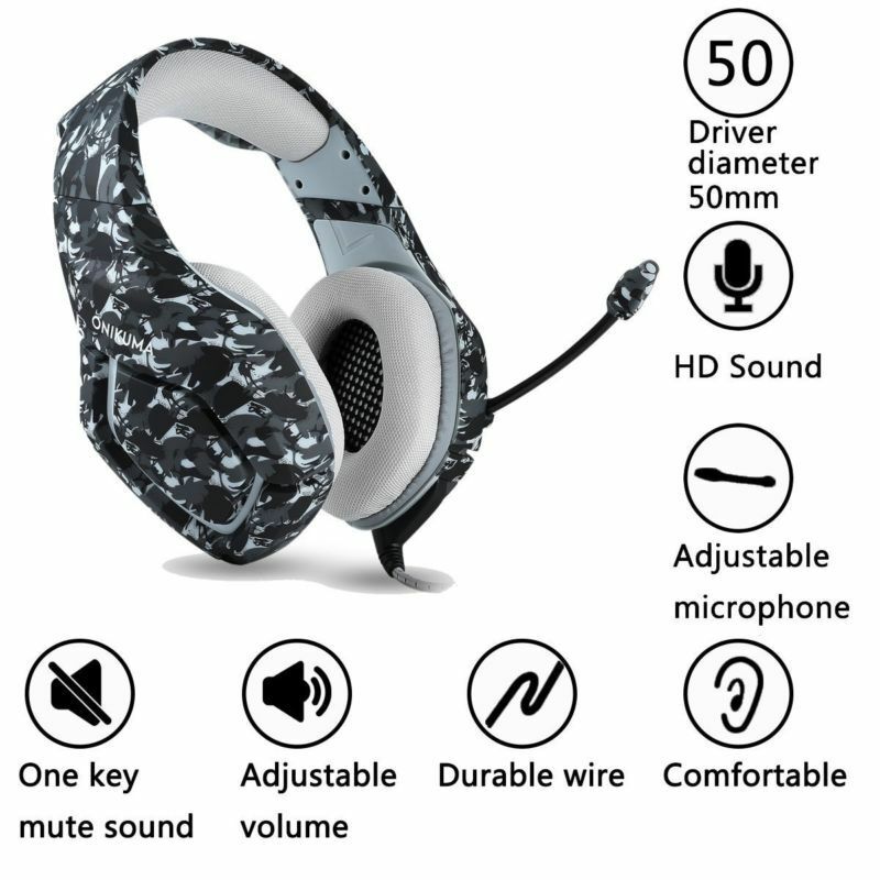 ONIKUMA K1 Gaming Headset for PS4 New Xbox One 3.5mm Over Ear Mic Camo Headphone Description PS4 Gaming Headset with Mic over-ear PS4, New Xbox One video gaming headset with great stereo sound is the best choice for you! Features: Fantastic Sound -- High quality sound and an omnidirectional noise reduction bring you vivid sound field.it can catch every detail speaking accurately and lets you hear what you can't see. Reliable Quality -- High tensile strength, anti winding braided line, with the designed specifically for gaming users and the design of the heart by wire.Robust material construction and high tensile strength is bearable to all kinds of squeeze, crash or fall. Noise Reduction Mic -- The long flexible gaming mic is high sensitive and durable, One key mute, Volume Control. Volume dial and mute switch are close at hand for quick audio adjustments. Multi-Platform Compatible -- PS4 Gaming Headset Fits for most of device with 3.5mm headphone / microphone port, support PS4, New Xbox One, PC, Nintendo 3DS, Laptop, PSP, Tablet, iPad, Mobile Phone. Comfortable and Professional -- This gaming headset uses super soft over-ear Earmuffs pads, and it is a profession headphone for game player, gives you an experience of an immersive. Note: Suitable for PC,PS4,new Xbox one,phone,Pad,mp3,mp4. Fully adjustable padded headband ensures perfect fit with different head sizes (suitable for both adults and kids) and wearing comfort in long time gaming. The breathable memory foam ear cushion helps to dissipate pressure and heat in long time wearing and blocks all ambient noises to ensure full concentration of gamers. The microphone can be freely positioned to pick up your voice or keep silent when you do not want to be heard. Mic mute key and in line volume control are attached to the braided cable at you hand for quick operation. SPECIFICATIONS: Speaker diameter: 50mm Impedance: 20Ohm±15% Sensitivity: 117dB±3dB Frequency: 20-20000Hz Mic dimension: 6.0 x 2.7mm Mic sensitivity: -36dB +/- 1dB Directivity: Omni-directional Headset interface: 3.5mm stereo audio plug Cable length: Approx. 2.0m / 6.56ft Headphone weight: 358g / 12.63oz Package: 1 x ONIKUMA K1-Pro Gaming Headset 1 x User Manual 1 x Audio Y Cable Policy Welcome to our eBay store! To make your purchase as simple and easy as possible, please refer to the store policies listed below. After winning an item in auction or completing a Buy It Now purchase, you have two check-out options: Check-Out Now!Click the Pay Now button at the top of this listing to immediately proceed with our checkout and payment process. Please note that the Pay Now button is ONLY available after winning an auction or completing a Buy It Now purchase. Check-Out LaterIf you do not choose to Check-Out now, you will be notified by eBay via e-mail that you are the winning bidder. There is no need to contact us to arrange payment. We will automatically send you an e-mail within three hours of an auction closing. Our message will contain a link to our simple and secure checkout system, where you will be able to quickly and conveniently pay for your purchase. Payment We only accept Paypal payment. Sales Tax For shipments to California, we are required by State law to collect 9% Sales Tax. Shipping We offer three shipping services for you to choose. If you have an urgent need for the item,please choose Priority Mail or Express Mail to ship your order. Delivery time is approximate: * USPS First Class--It normally takes 4-8 working days to most citices in Untied States. * USPS Priority Mail--It normally takes 2-3 working days to Majoy citices. * Express Mail-- It normally takes 1-2 working days. We will try our best to ship out your order in 24 hours. But we don't arrange shipment on weekends. We appreciate your great understanding. Customer Service We have been a professional eBay seller for years. You are assured that your goods will be delivered to you in a speedy and satisfying way. Our friendly staff will also assist you to ensure your buying process easy and smooth! Please contact us through eBay link for any questons. We will reply you ASAP, if no response for you within 48 hours, please check the spam in your mail box.
