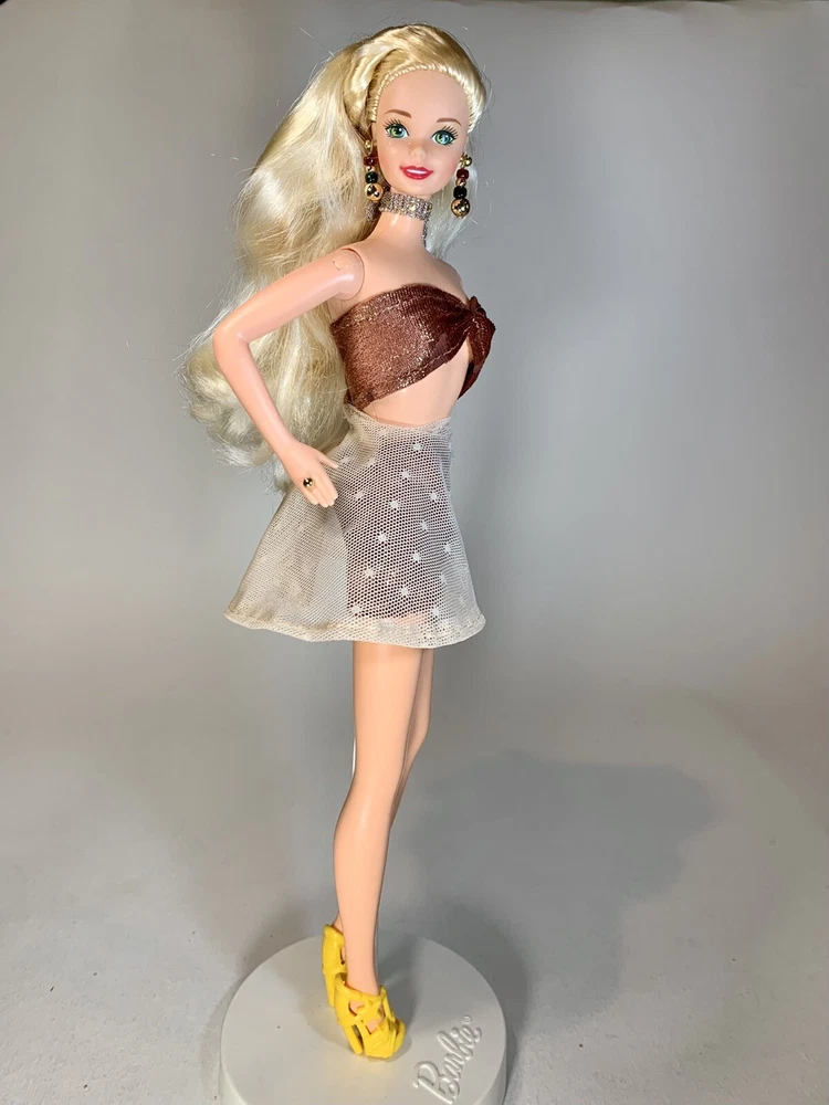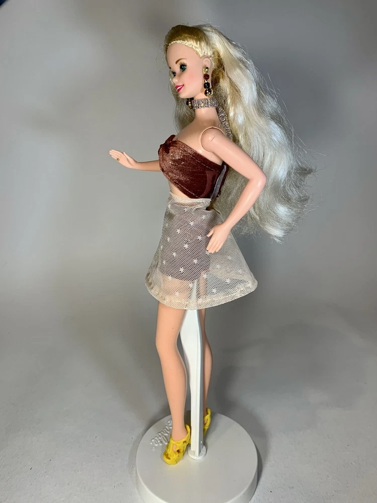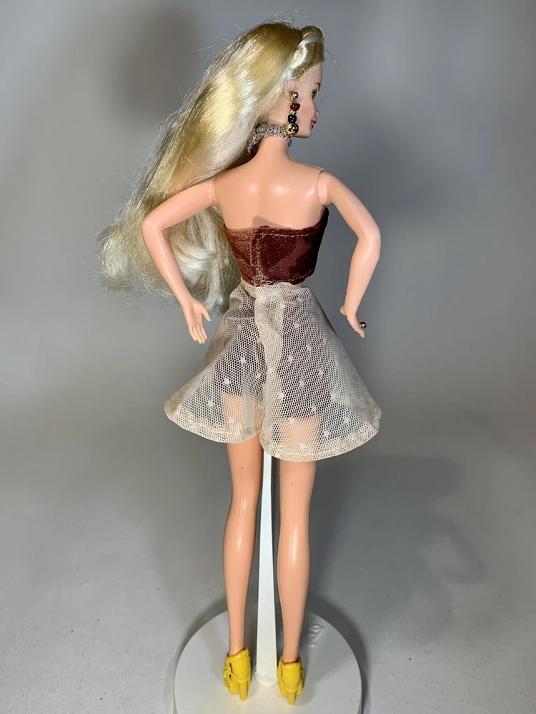 This OOAK clothing set is designed for Barbie dolls and features a vintage-inspired pinup vibe 2-piece skirted swimsuit and matching shoes. The set includes a complete outfit, with shoes & swimsuit, all made from quality cloth material. Perfect for collectors or Barbie enthusiasts, this unique set adds a stylish and fun touch to any Barbie doll collection. Please note that the doll is not included with this set.