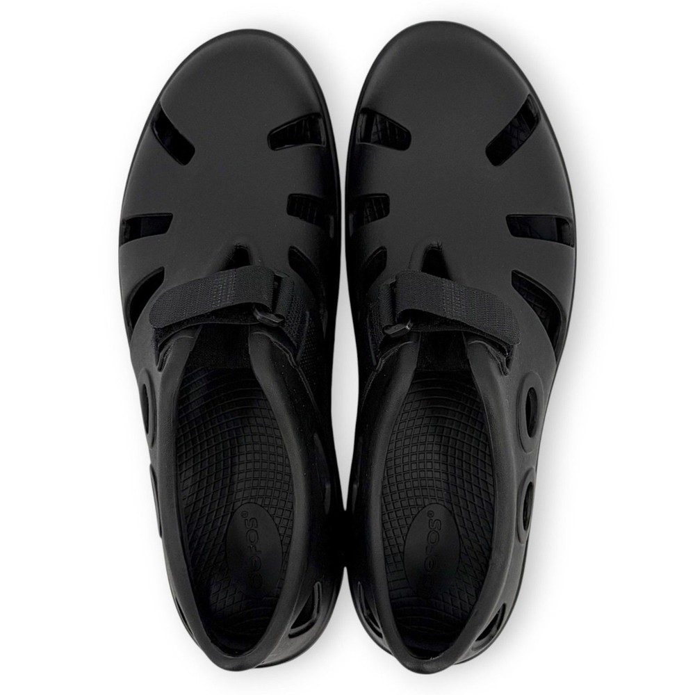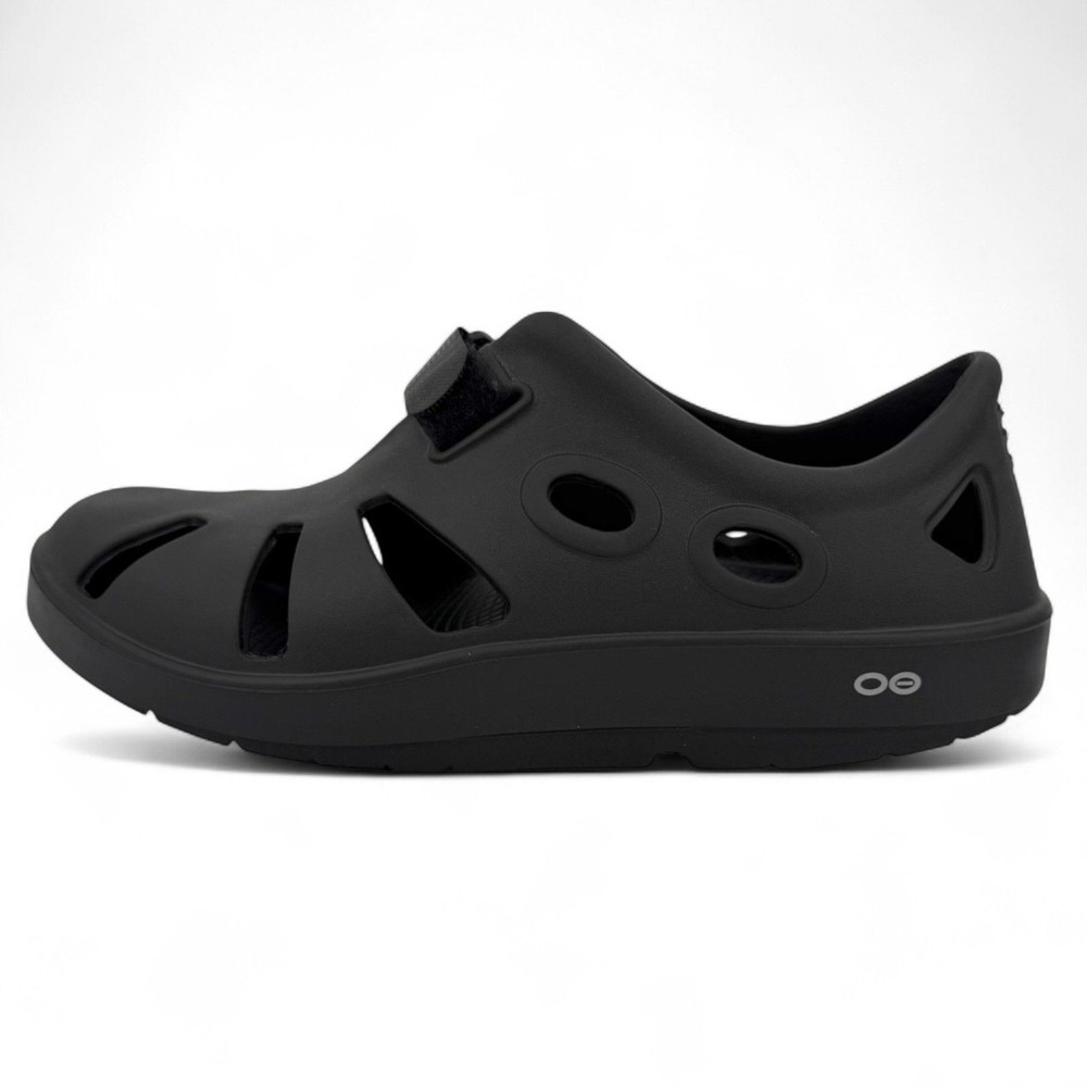 Like new Black Size 12 men Versatile, lightweight and flexible design OOfoam™ technology and the patented OOFOS footbed Hook and loop fastener Like New OOFOS Men's OOcandoo Sandal Black Size 12