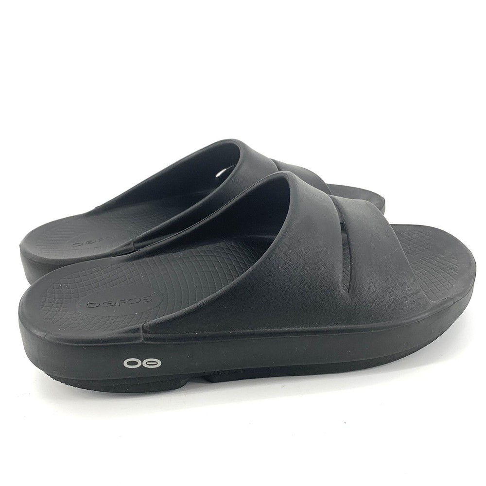 OOFOS OOahh Recovery Slide Sandal Black Men's 8 Women's 10. Item is in good preowned condition normal signs of use as pictured.