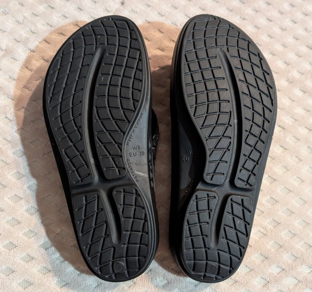OOfos OOlala comfort recovery slides women's size 8. I found these sandals secondhand in good condition.