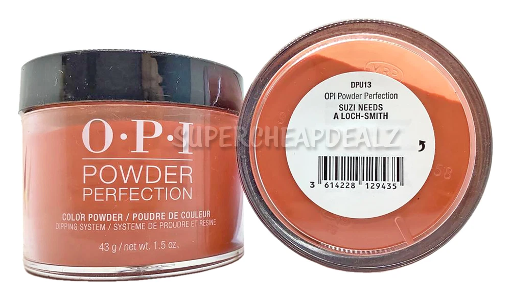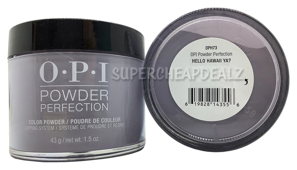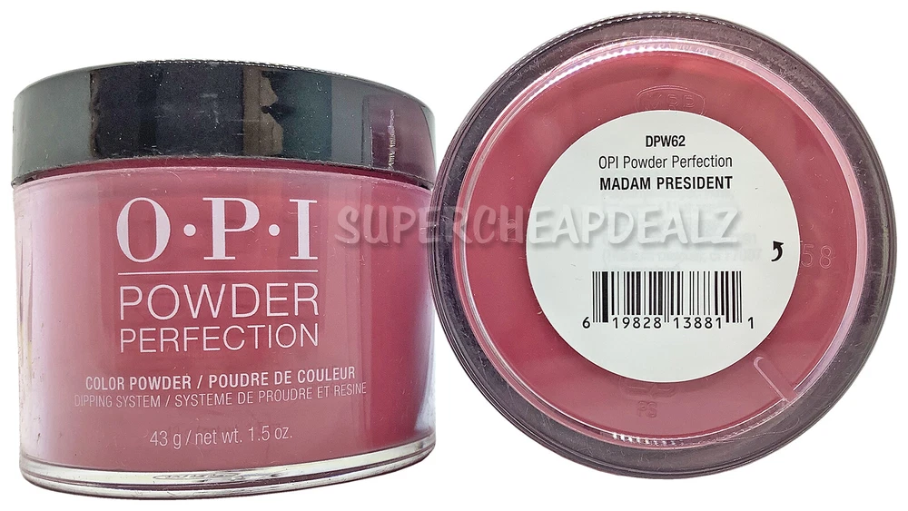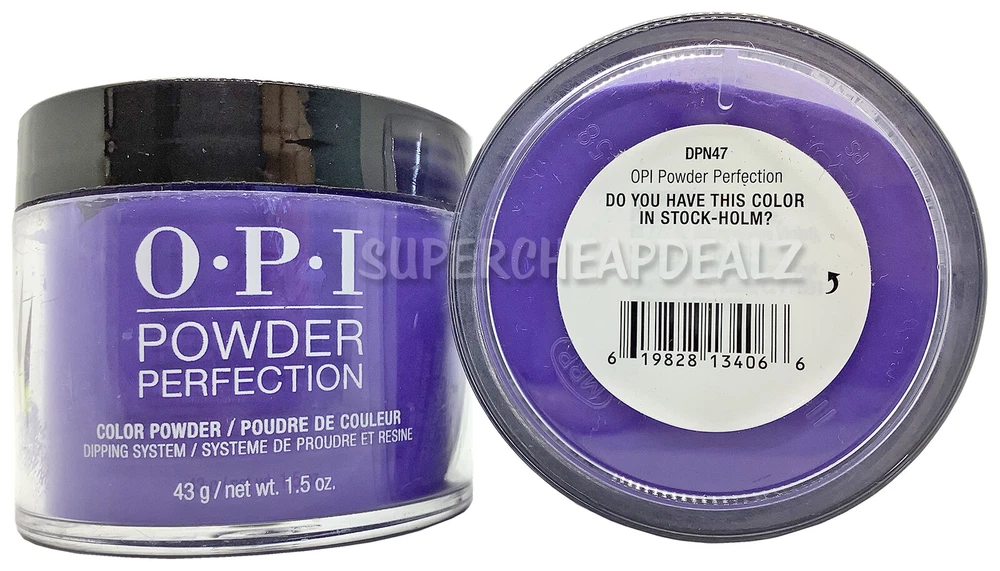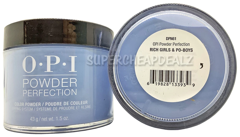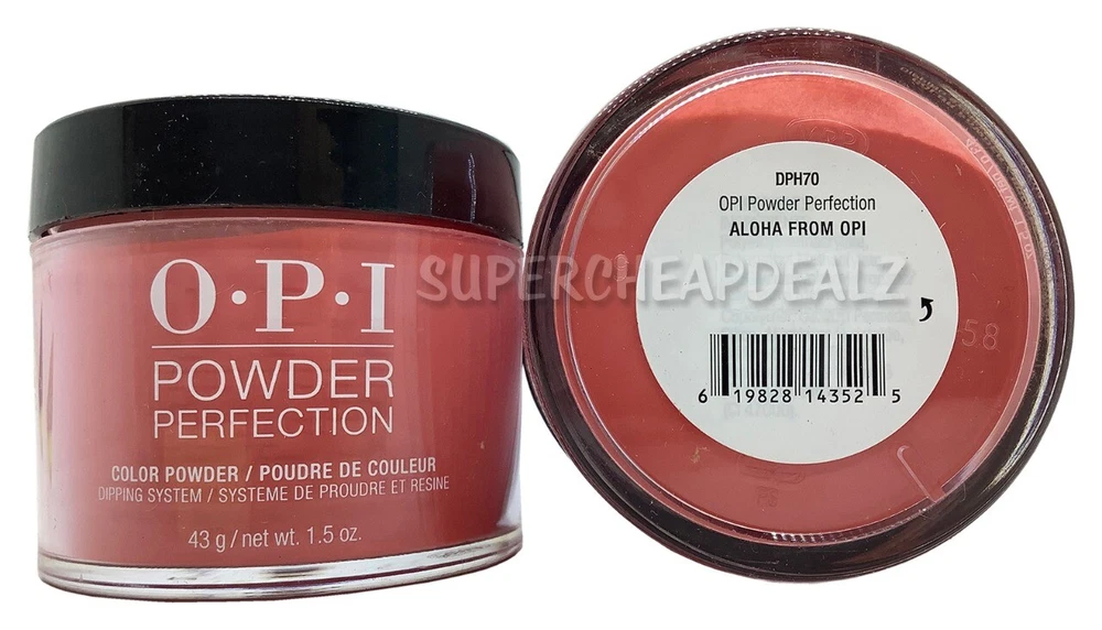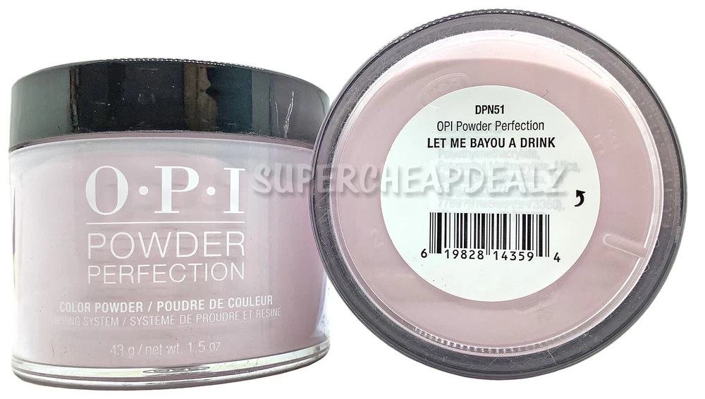 OPI Powder Perfection - CHOOSE Dip Powder | Base | Activate | Top Visit our eBay store for more great deals! Item Details OPI Power Perfection Dip Powder | Base | Activator | Top Dip Powders DO NOT come with the liquids. Please select to purchase. Sold separately. Choose option from drop down menu Dip Powder - 43 g / 1.5 oz Base Coat - 15 ml / 0.5 oz Activator - 15 ml / 0.5 oz Top Coat - 15 ml / 0.5 oz Click here for the OPI Acrylic Polish Organizer Rack Click here for the OPI Dual Cure LED Nail Lamp All goods are 100% AUTHENTIC and brand new , in manufacturer's original packaging. OPI Nail Powder Dip into durability with dipping powers designed to give you confidence. Get beautiful and strong nails that hold up to your lifestyle. *Information provided by OPI Disclaimer Actual colors may vary. This is due to the fact that every computer monitor has a different capability to display colors and that everyone sees these colors differently. We try to edit our photos to show the samples as life-like as possible, but please understand the actual color may vary slightly from your monitor. We cannot guarantee that the color you see accurately portrays the true color of the product. Disclaimer: Handle and store product with care per manufacturer instructions. Use at your own risk. Seek professional attention if needed. SuperCheapDealz, Inc . is not responsible or liable for any type of improper usage or negligence of this product, which may cause damage or harm. Use this product for its intended use only. SuperCheapDealz, Inc. is not responsible for changes of manufacturing components, specifications or color which may differ from literature, websites or other promotional items. Image may vary from different types of screens. Shipping will comply with regulations and shipped ORM-D . Dip Powder: Ingredients - polyethyl methacrylate, polymethyl methacrylate, benzoyl peroxide, silica. may contain: aluminum hydroxide, barium sulfate, bis propane, calcium aluminum borosilicate, red 6, red 7, violet 2, iron oxides, red 30, red 27, barium sulfate, ultra marines, yellow 5, bismuth oxychloride, maganese violet, ferric ferrocyanide, blue 1, red 33, mica, tin oxide. Liquid: Ingredients - Ethyl Acetate, Methyl Propyl Ketone, MIBK, Dimethyltolylamine Terms of Sale Payment: We accept Paypal, Visa, Mastercard, Discover & American Express Returns: W e stand behind every product we sell with a 100% product guarantee. Please contact us if you are not satisfied with your purchase within 30 days from the delivered date. R eturned item must be in original condition, including the box, stickers/labels, packaging, and all accessories. Restocking fee of 20-50% will be applied if these conditions are not met. A ny return without our authorization will not be accepted. A ll return packages should be accompanied by a tracking or delivery confirmation number back to our warehouse. Shipping Information We offer FREE SHIPPING on all orders in the 48 contiguous United States! Shipping to Alaska or Hawaii will require additional charges. We ship all orders the same day or next business day. Once an order is shipped, you will be emailed a tracking number. Please make sure you enter the correct shipping address. We will not make any changes to the shipping address once you place an order .