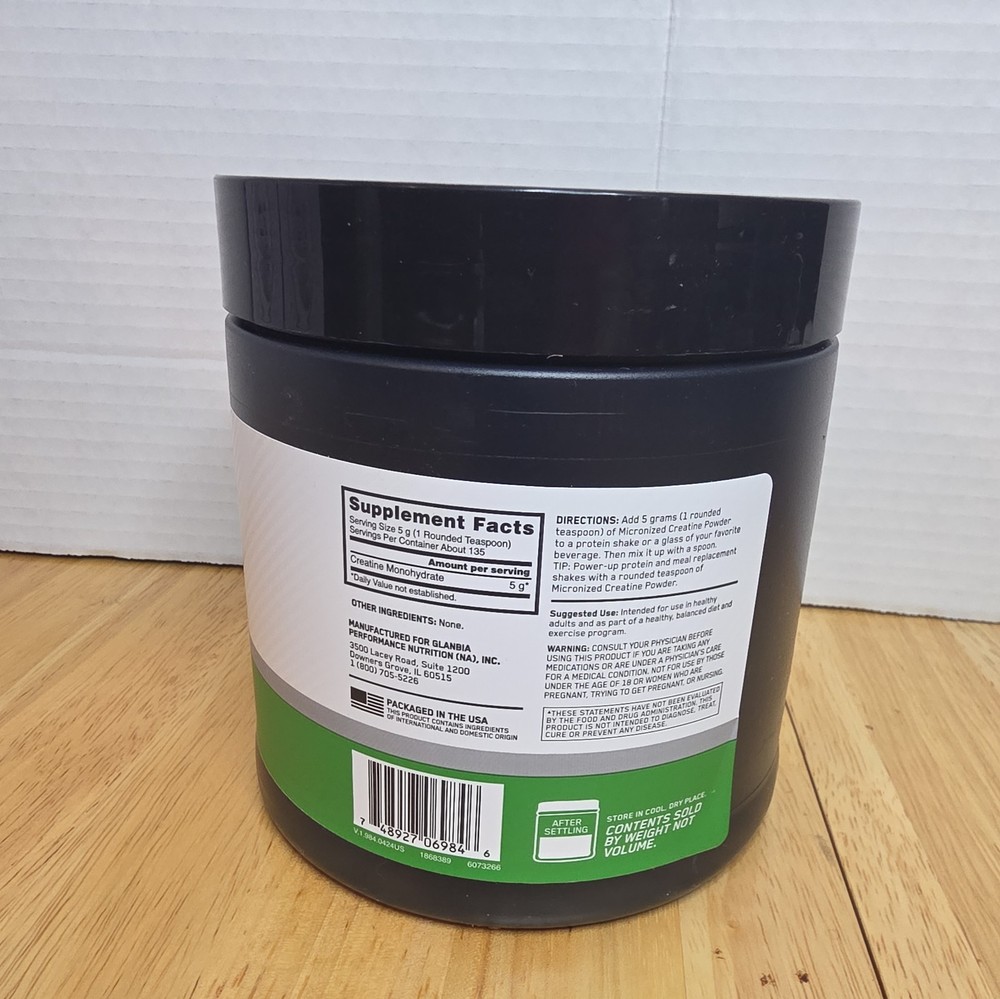 UPC: 748927069846 Expiration Date: 10/2026 Department: Unisex gtin13: 748927069846 Brand: Optimum Nutrition Flavor: Unflavored Active Ingredients: Creatine Location: FBL-T Formulation: Powder