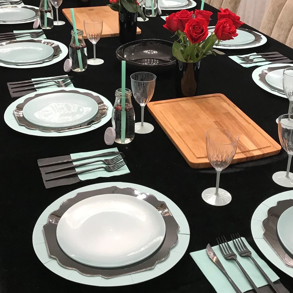 Change the look of your table and awe your guests with these Opulence Collection Silverware Set. Transform your event into a magnificent and memorable experience using our flatware set. What’s in the Box: 20 x Knives Product Features: 100% eco-friendly and non-. Made from high-heavyweight plastic material. Sturdy and durable, won’t easily snap, sag, or break Durable to use and handle. Leak free, soak-proof, cut resistant and unbreakable. Resists any sharp object. High-end look at an affordable price Benefits: Made from the finest plastic on the market. All our products undergo strict quality control to meet the high standards of our customers. Our eco-friendly non-disposable plastic cutlery are safe to use anytime and anywhere. Classy, elegant yet affordable. The beautiful design will lend a touch of sophistication to your event at a significantly low cost to you. Great value! This premium disposable flatware is heavyweight and reusable for future party events. These cutlery will enhance the appearance of your food displays and will create the perfect setting for your event. This is a hassle-free alternative to using real flatware dishes and worrying about rental fees or washing dishes. Our disposable tableware collection will enhance your party and turn it into a magnificent and memorable experience. Set your table to perfection with this Opulence Collection Knife Set. With their fine antique look and elegant design these cutlery are sure to bring your event to the next level. How to decorate the table setting at your next occasion is no simple matter. With you can be sure you will be getting the highest quality at the lowest cost. So Why Hesitate? Scroll up and Click “Add to Cart” Now! PREMIUM QUALITY – This beautiful and versatile black plastic silverware set is composed of high-heavyweight plastic materials rendering it strong enough for every type of food you might be serving. These flatware are 100% food and safe to use for a fine dining experience EXQUISITE DESIGN – This Opulence disposable knives has a simple design which gives them a classy and elegant accent. The black color has a pearl like appearance which makes it a perfect product to complement any color scheme and upgrade your event to a higher standard. COST EFFICIENT & AFFORDABLE: With this dazzling set of disposable flatware you get the look of high-end silverware, at an affordable price. Bring your party to a higher level without compromising on quality and reliability with this elegant Opulence flatware set. DESIGNED FOR ALL OCCASIONS: Our cutlery sets are ideal for all occasions. They can transform a simple table setting into a stylish . These flatware are a perfect option for upgrading banquets, weddings, engagements, birthdays, parties, baby showers, upscale catering and home dinners, etc. CONVENIENCE – These knives are disposable; however, you can reuse them if you wish. Package Includes: 20 knives. Check out our matching plates, flatware and more from Opulence Collection