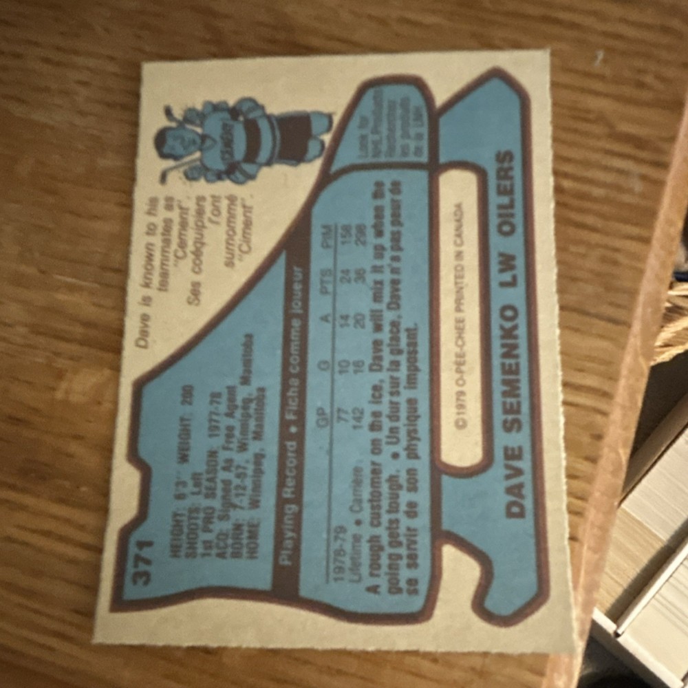 O-Pee-Chee 1979-80 Dave Semenko #371 Edmonton Oilers NHL Hockey Card