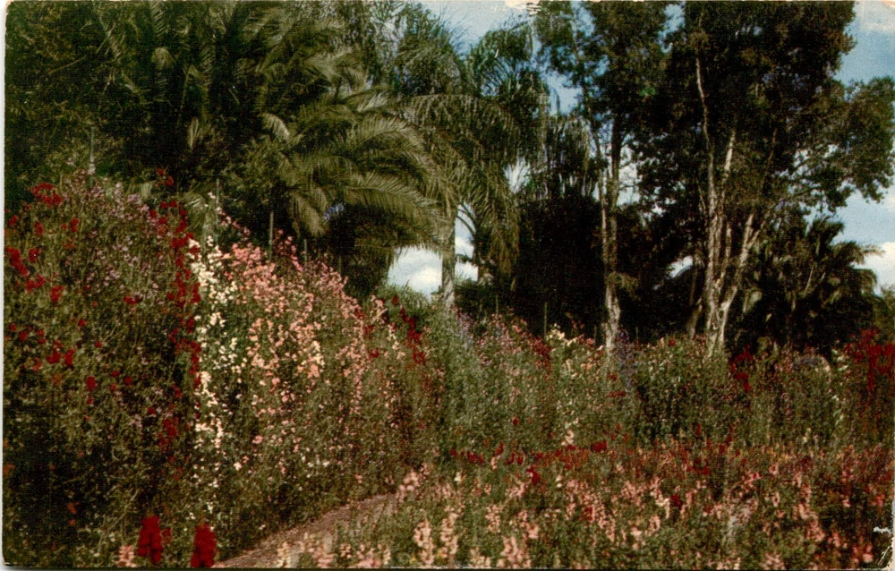 MAKE AN OFFER. THE MORE YOU BUY THE BETTER DEAL I WILL ACCEPT This postcard features a picture of a hedge of sweet peas in Lake Eola Park in Orlando, Florida, known as The City Beautiful. The image is a reproduction in Curteichcolor from a Kodachrome original. The postcard is part of a series identified as OC-K129 by the Orange News Co. based in Orlando, Florida.