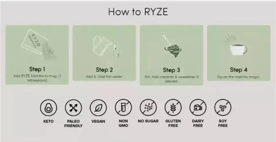 RYZE Organic Mushroom Matcha NEW 2024 30 Servings-6.35 Oz Ryze Organic Mushroom Matcha offers a unique blend of premium matcha green tea and organic mushrooms, providing a natural boost to your day. This harmonious combination delivers a rich, earthy flavor while supporting your overall health and well-being. Key Features: Organic Ingredients: Crafted with 100% organic matcha and a blend of functional mushrooms, including Lion's Mane, Cordyceps, and Reishi. Product Information and Disclaimer Measurement Tolerance: Please note that there may be a slight variation in weight (2-5g) due to manual measurement. This is within the acceptable range and does not affect the product's quality or performance. Color Variation: Due to differences in monitor settings and calibration, the product's color may appear slightly different on your screen compared to the actual item. SKU Color: The SKU color refers to the color of the product packaging, not necessarily the color of the product itself. We appreciate your understanding.