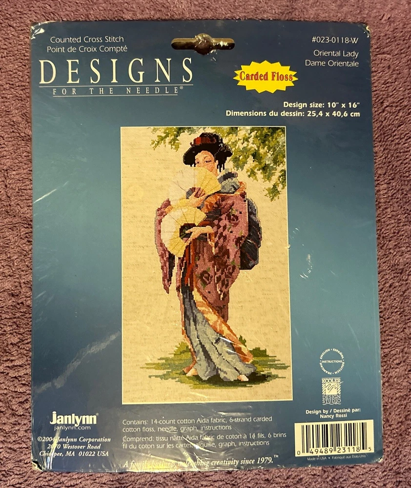 ORIENTAL LADY #023-0118-W COUNTED CROSS STITCH 10" X 16" CARDED FLOSS JANLYNN . Condition is New. Shipped with USPS Ground Advantage.