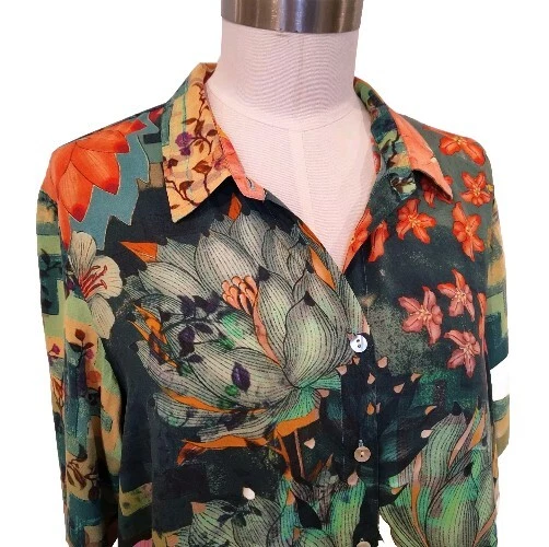 Size Type: Regular Vintage: No Color: Multicolor Fit: Regular Pattern: Floral Seller Notes: “In VG preowned condition with no stains, holes, wear or damage. Pls. see provided pics.” Sleeve Length: Long Sleeve Style: Basic Season: Fall, Spring, Summer, Winter Neckline: Collared Brand: Orientique Naturally Australia Theme: Colorful, Tropical Department: Women Occasion: Business, Casual Fabric Type: Woven Country/Region of Manufacture: India Material: Rayon Size: M Type: Button-Up Closure: Button