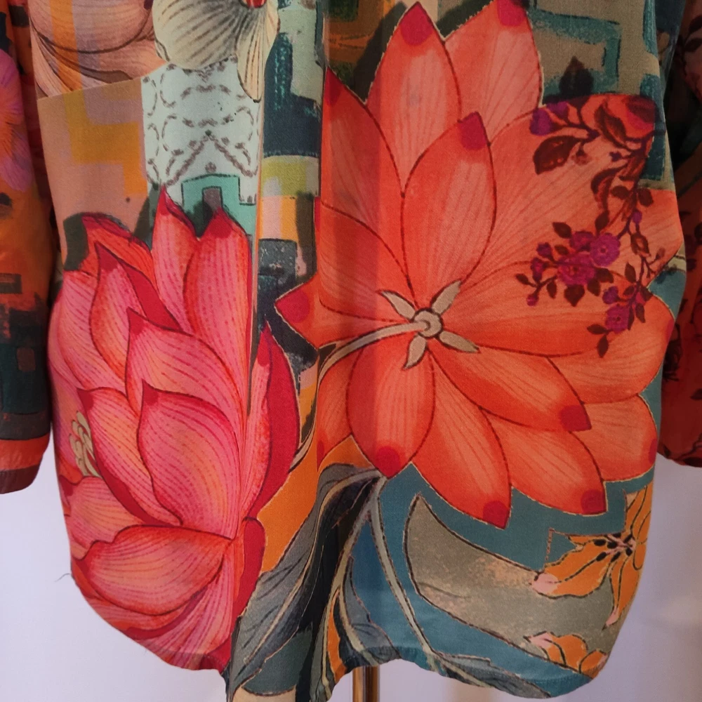 ORIENTIQUE AUSTRALIA Colorful Floral Print Rayon Blouse Medium
