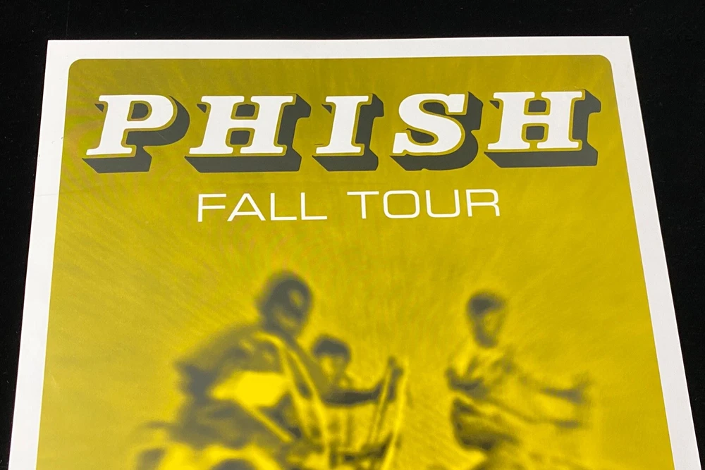 CHECK OUT OUR 7 DAY AUCTION FOR PHISH CONCERT POSTERS ENDING WEDNESDAY 11/27! Up for sale is an original 1999 Phish Fall Tour concert poster from their legendary performance at General Motors Place in Vancouver, BC . This stunning piece is a must-have collectible for Phish fans and poster enthusiasts alike, featuring a bold yellow and black glossy design with a dynamic image capturing the spirit of the band’s fall tour. Specifications: Dimensions: 17 inches by 11 inches. Date of Event: September 9, 1999. Venue: General Motors Place, Vancouver, BC, Canada. Material: Slightly thick card stock/poster paper with a glossy finish on the front and a smooth white verso. Condition: Great overall condition with sharp edges and vibrant colors (see photos for details). Printing Type: Original lithograph printing. Condition Details: Front: The yellow and black glossy design is bold and vibrant, featuring the iconic motorcyclist blur graphic that embodies the energy and excitement of Phish’s live performances. Event details, including the date, venue, and ticketing information, are crisp and fully legible. Edges and corners are sharp, with minimal signs of handling or wear—ideal for framing and display. Back: The reverse side is clean and smooth white with no visible marks, discoloration, or damage. Notable Features: General Motors Place: Commemorates Phish’s performance at this renowned venue during their 1999 Fall Tour. Dynamic Artwork: The bold motorcyclist blur design creates a visually captivating aesthetic, perfect for showcasing Phish’s unique artistic identity. Produced by Bill Graham Presents: A trusted name in concert promotions, ensuring the quality and collectible value of this piece. Vibrant Glossy Design: The bright yellow and black colors with a sleek glossy finish make this poster stand out and shine in any collection. Why Buy This Poster? This original 1999 Phish Fall Tour poster is a vibrant and rare piece of music history, perfect for any Phish fan or collector of concert memorabilia. Its bold design, excellent condition, and connection to an iconic performance make it a timeless and valuable addition to any collection. Don’t miss your chance to own this authentic and visually stunning collectible! Message with any questions or to request additional photos. Thank you for checking out this listing!