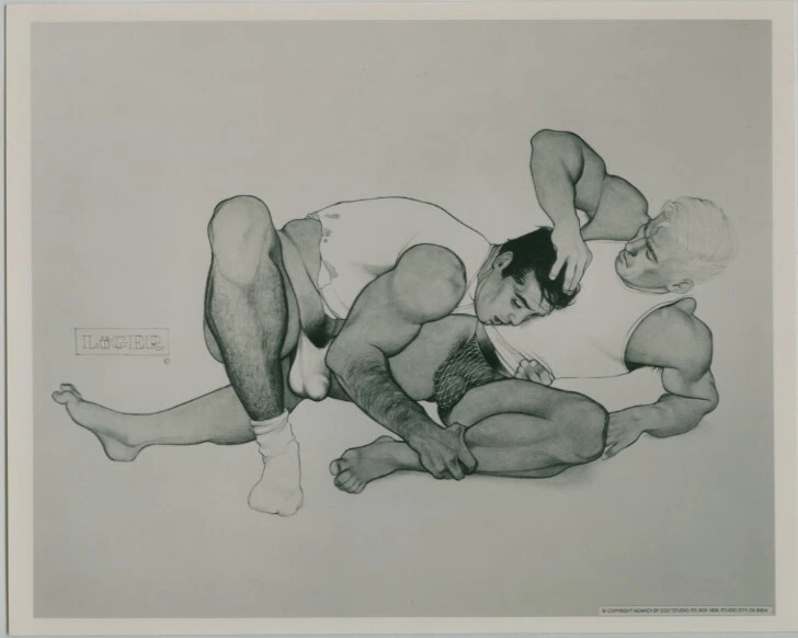 Vintage 1992, original, late 1960's photograph of drawing by LUGER aka JIM FRENCH - Gay Interest. 8x10" B&W photograph on heavier weight paper with a satin finish. Both listings of artworks featuring wrestlers were reprinted by COLT STUDIOS in 1992. All others are vintage late 1960's. The trade name LUGER appears on recto near the left side print edge. MINT condition. Please check out my other listings. I do not accept returns so please ask any questions before bidding. This is a part-time activity for me, so understand I may not always answer a message same day. Combined Shipping: I will combine shipping. If you’ve won multiple items, please wait for my invoice. I am now charging $6.00 S&H for a single photo and $9.99 for multiple photos for Priority Mail.