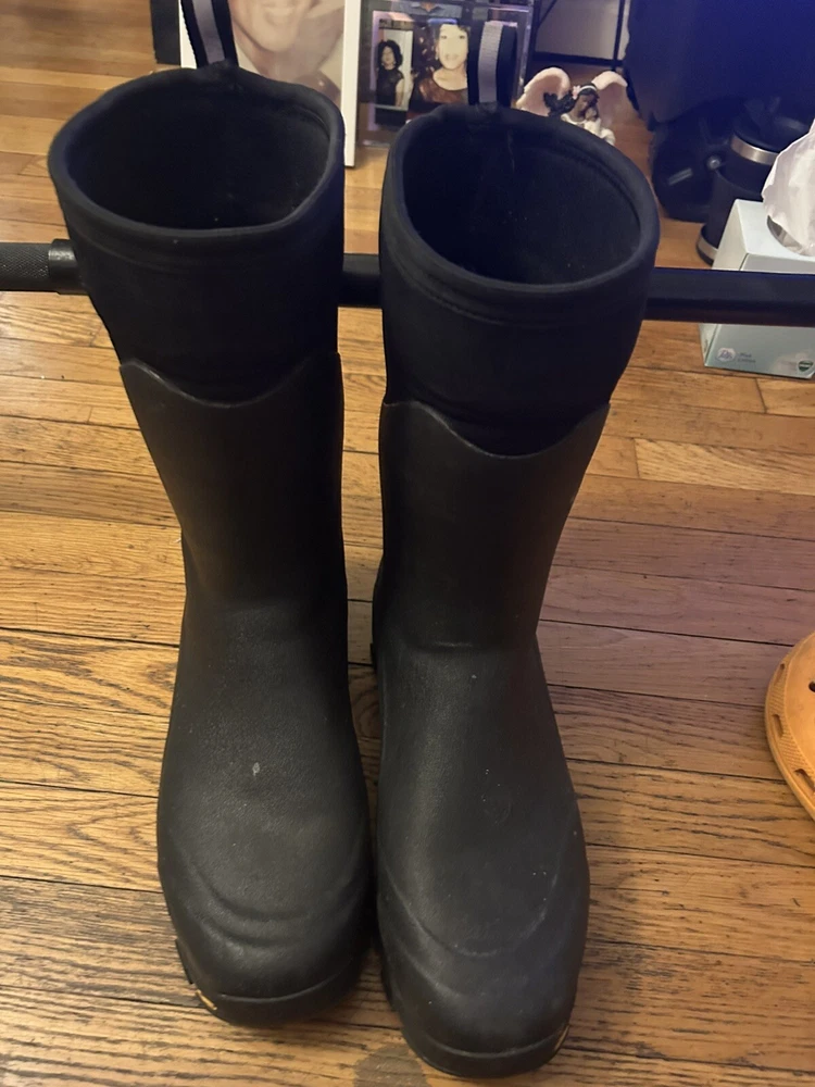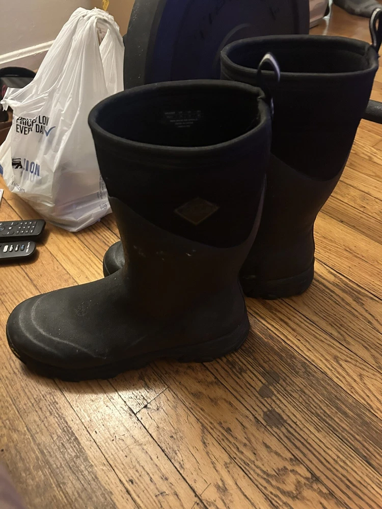 Get ready for the cold weather with these original Muck Boots from the Muck Boot Company. These black snow boots feature an insulated and waterproof design, perfect for keeping your feet warm and dry during winter. The boots have a round toe shape and pull-on closure for easy wear, and are made with a durable rubber upper and lining material. With a UK shoe size of 14 and US shoe size of 15, these boots are perfect for men who want to stay comfortable during winter. The boots also feature a Mossy Oak product line and are made in China. Whether you're going on a winter hike or just want to stay comfortable at home, these Muck Boots will keep your feet warm and dry all season long.