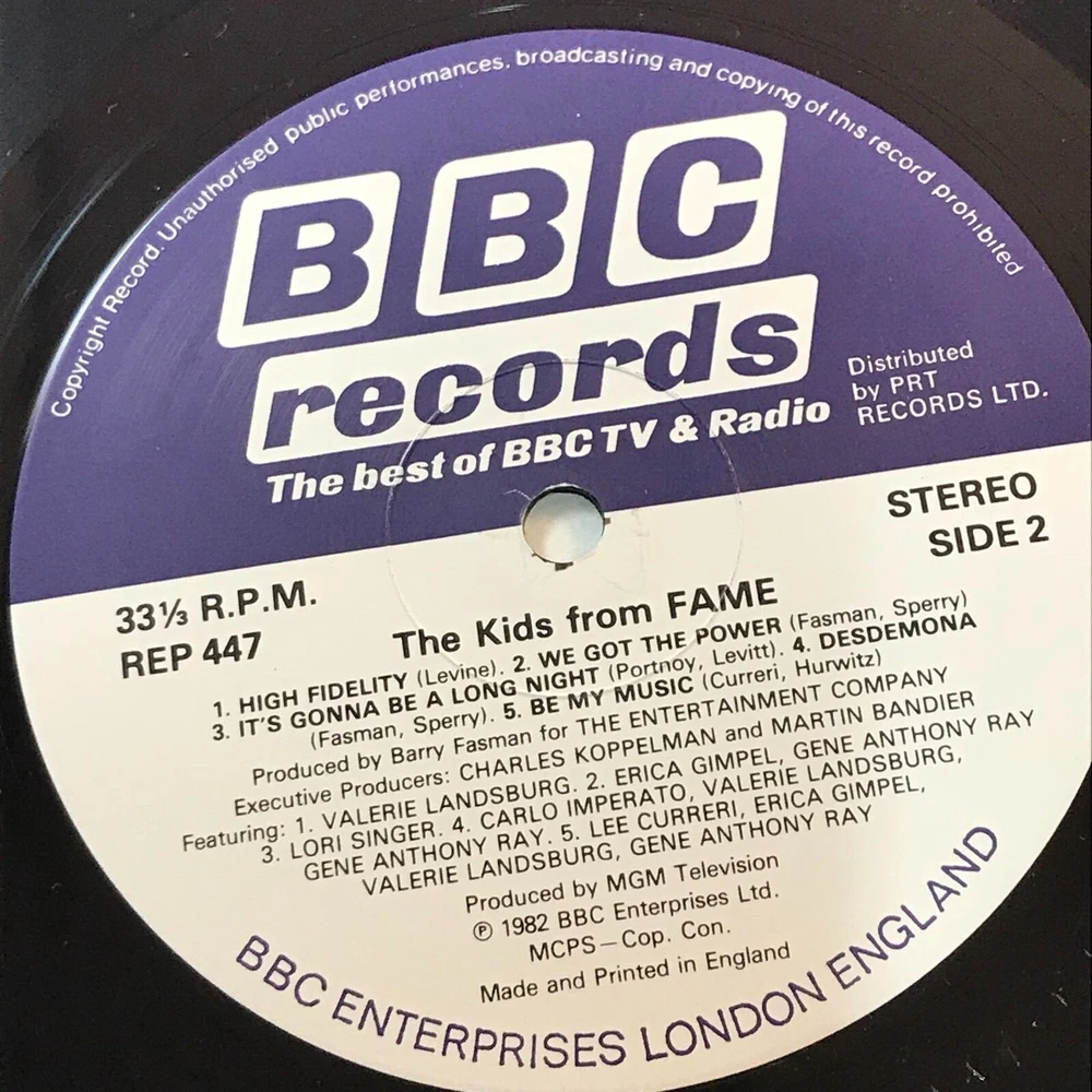 ORIGINAL SOUNDTRACK The Kids From Fame - 1982 UK vinyl LP featuring the music from the soundtrack of the TV Series, in a gatefold picture sleeve. BBC Records REP 447 Starmaker I Can Do Anything Better Than You Can I Still Believe In Me Life Is A Celebration Step Up To The Mike Hi-Fidelity We Got The Power It's Gonna Be A Long Night Desdemona Be My Music Record Condition : Excellent Sleeve : Excellent Please check out our other items !
