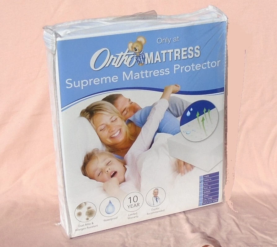 ORTHO SUPREME MATTRESS PROTECTOR Click Image to Enlarge Click Image to Enlarge I accept Here is one Ortho Supreme Mattress Protector size Twin XL. 38" wide, 80" long. This creates a barrier to stop dust mites and allergens from taking up residence in your mattress. Machine washable. Made of 100% polyester. Laminate backing is 100% breathable polyurethane. Waterproof. In its original sealed plastic package. New. Never been used. Package is 2" thick. Gross weight: 1 pound 2 ounces. This will ship inside a cardboard box. On the outside I'll write HANDLE WITH CARE. Consider these options for a package weighing 1 pounds 10 ounces and add your preference to the total. UNITED STATES: Shipping is set at calculated, making it less expensive the closer you are to me in Los Angeles; Estimated delivery 2-10 days Priority Mail comes with free insurance, Estimated delivery 2-4 days .