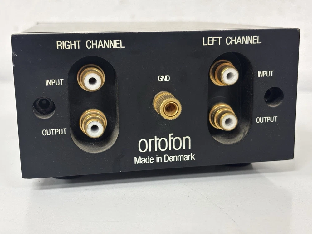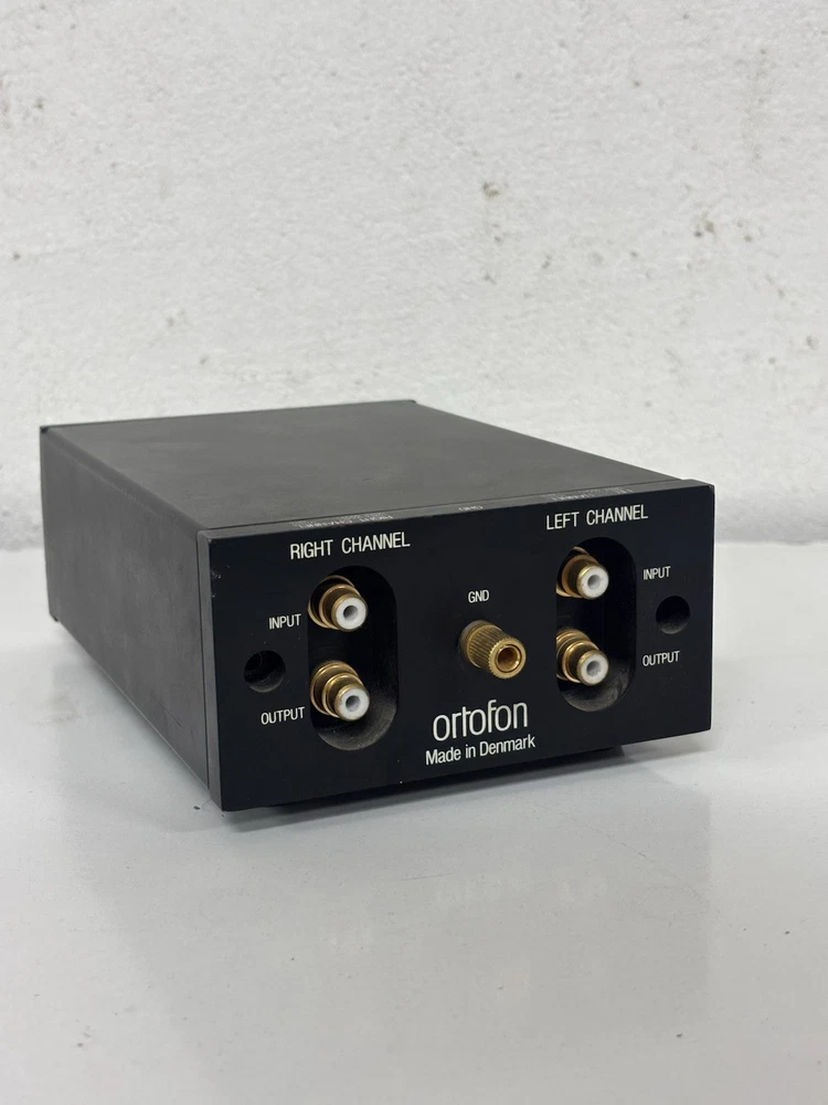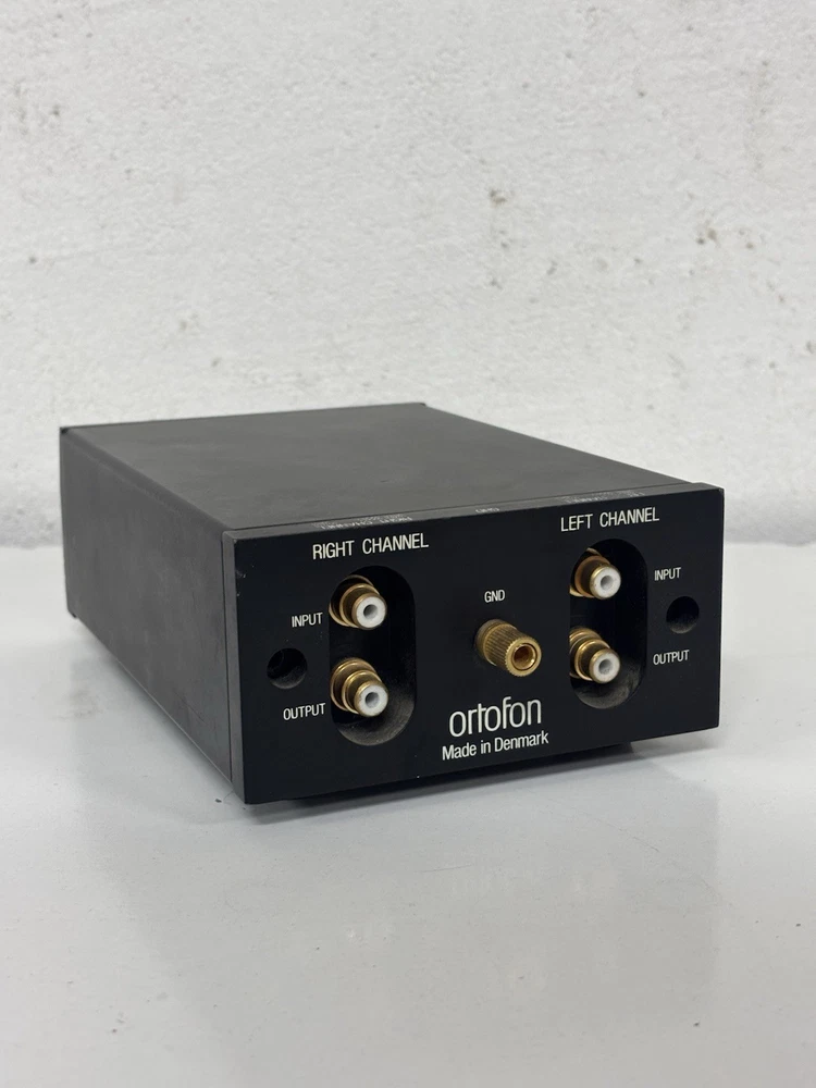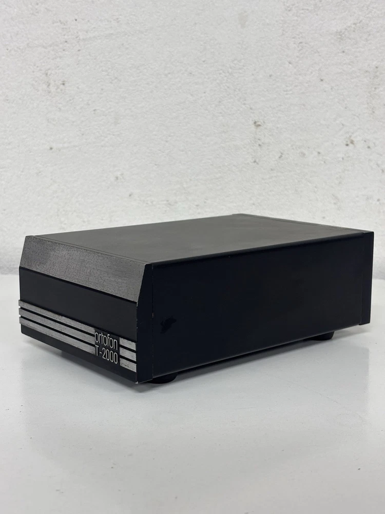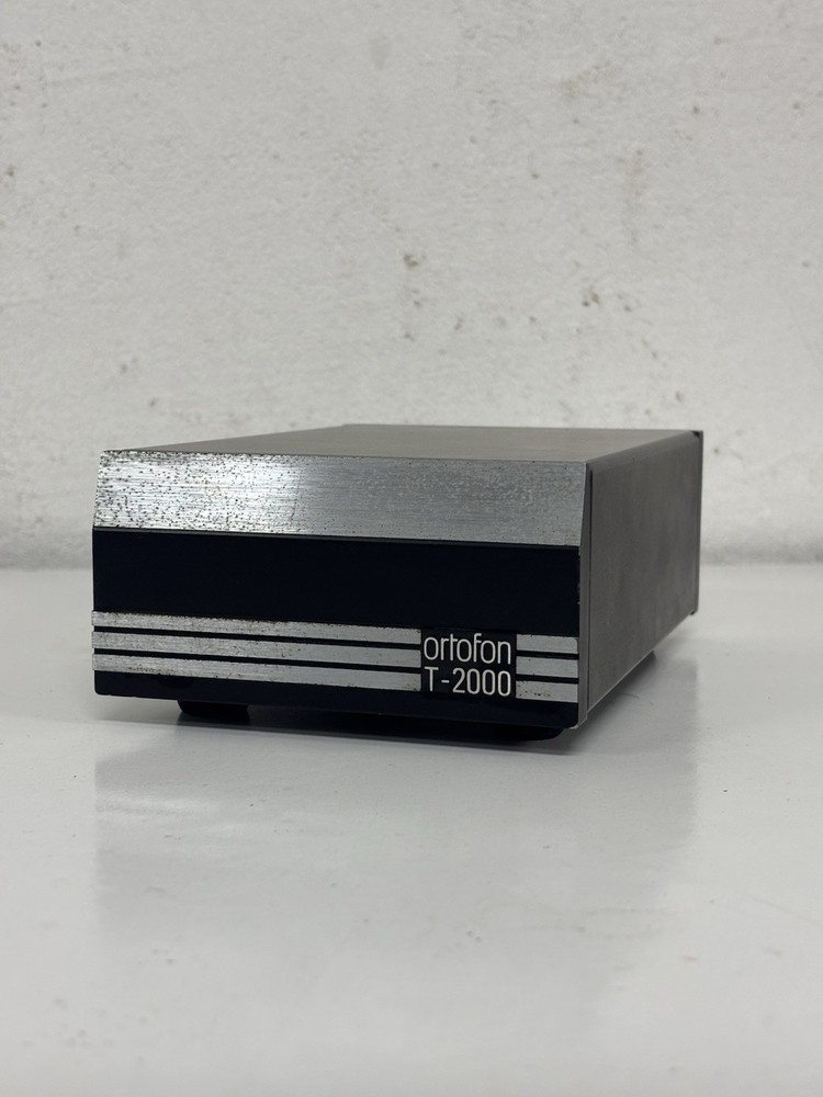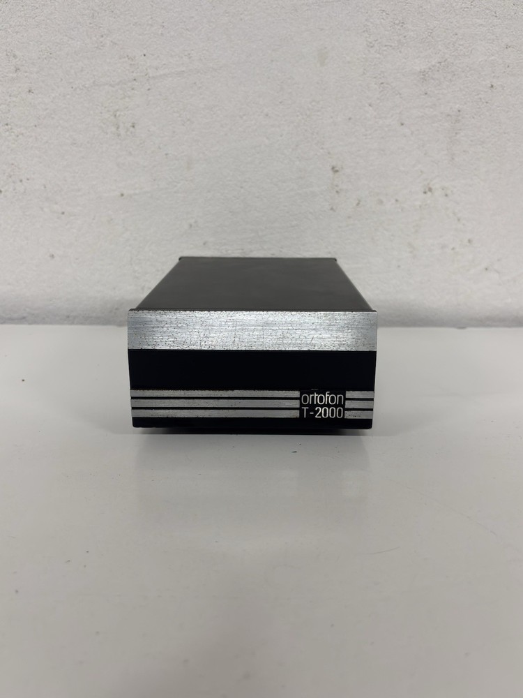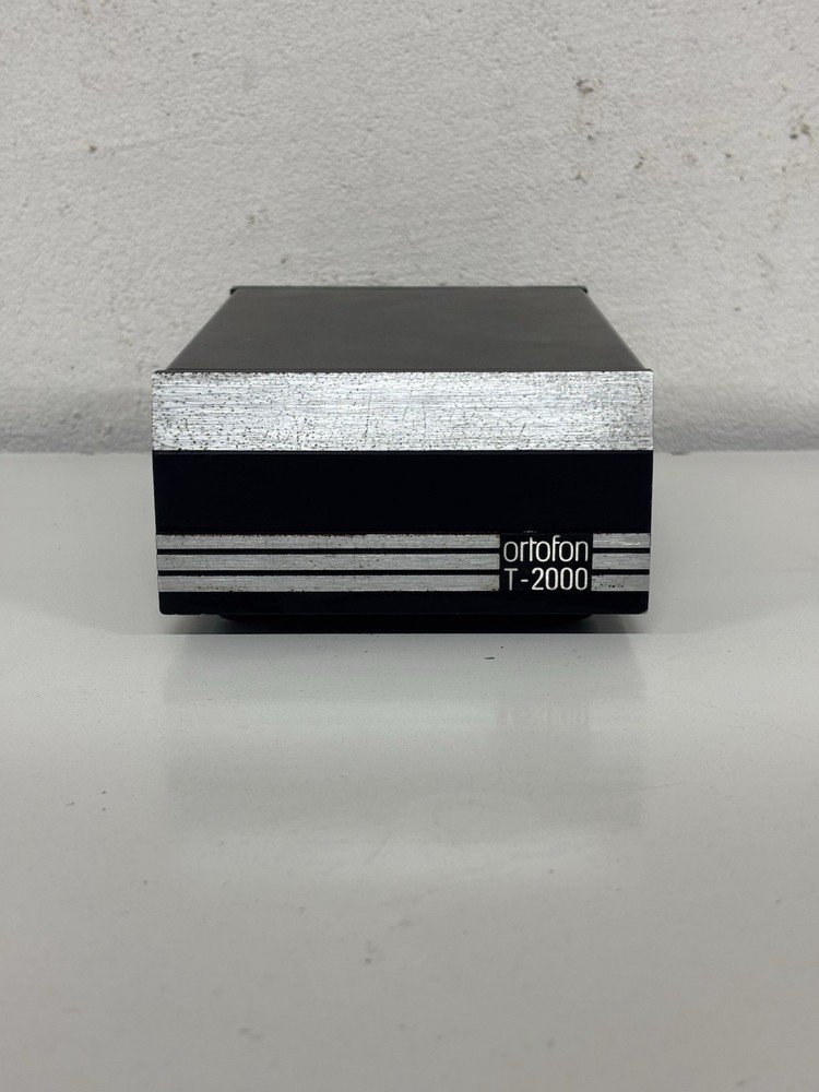 ORTOFON T-2000 Step Up Transformer MC Phono Cartridge USED from ITALY. Progettato e costruito in Danimarca nel 1982, questo dispositivo non è un semplice accessorio, ma un componente leggendario creato con un unico scopo: far cantare la mitica testina Ortofon MC 2000. Poiché la MC 2000 aveva un'uscita incredibilmente bassa (0.05 mV), Ortofon dovette creare un trasformatore senza compromessi, massiccio e tecnicamente estremo. Il risultato è il T-2000, un "mattoncino" che pesa quasi 3.5 kg nonostante le dimensioni compatte, considerato ancora oggi uno dei migliori SUT mai realizzati. 1. Avvolgimenti in Argento: A differenza dei modelli standard in rame, il T-2000 utilizza conduttori in puro argento sia per gli avvolgimenti che per il cablaggio interno. Questo garantisce una risoluzione dei dettagli e una "aria" sugli alti inarrivabile. 2. Guadagno Estremo (35dB): Con un rapporto di trasformazione di circa 1:55, è l'unica soluzione vera per testine MC a bassissima uscita (Low Output) come Ortofon MC2000, Audio Note lo, o Kondo. 3. Costruzione Toroidale Schermata: All'interno non c'è aria, ma una schermatura pesantissima in permalloy e ferro dolce che elimina ogni ronzio (hum) e interferenza, portando il rapporto segnale/rumore a livelli eccellenti. Testato e perfettamente funzionante su entrambi i canali. Nessun fruscio o ronzio anomalo. • Estetiche: Buone condizioni generali per l'età. Il cabinet nero è solido. I connettori RCA posteriori (placcati oro) sono puliti e privi di ossidazione. Scheda Tecnica (Specifiche Reali) • Produttore: Ortofon (Made in Denmark) • Modello: T-2000 • Tipologia: Moving Coil Step-Up Transformer (Toroidale) • Materiale Avvolgimenti: Argento • Risposta in Frequenza: 8 Hz - 100.000 Hz • Guadagno (Gain): 35 dB (Rapporto ca. 1:55) • Impedenza Ingresso (Cartridge): 2 - 4 0hm (Ottimizzato per 3 Ohm) • Separazione Canali: > 70 dB • Schermatura: Permalloy + Ferro dolce • Dimensioni: 58 x 118 x 180 mm • Peso: ca. 3.5 kg (Costruzione ultra-pesante)