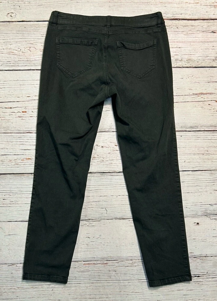 Upgrade your wardrobe with these stylish and comfortable Orvis Women's 10 Green Stretch Twill Pull On Leggings Skinny Ankle Pants. The pants are perfect for casual occasions and come in a beautiful green color that will complement any top. The pants are made of a blend of spandex, rayon, cotton, and cotton blend fabrics that provide a comfortable and stretchy fit. The flat front and slim fit of the pants create a flattering silhouette, while the pull-on closure and pockets add convenience and functionality. These pants are machine washable, making them easy to care for. The mid-rise and twill fabric type ensure durability and comfort. Get your hands on these trendy jeggings today and step out in style! Check pictures for condition and measurements for size.