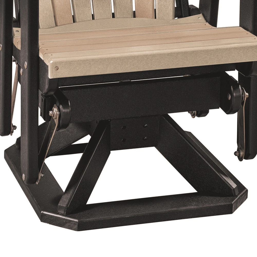 This will be your new favorite relaxing spot! The swivel glider is made in the USA and the perfect addition to any outdoor area. Built for comfort and constructed with high density poly resin. Poly resin is a wood lumber substitute made from recycled materials, will not chip, crack, rot, or develop mold. You can be sure that you will get many years of relaxation from this glider! Free Shipping Over $49.99* Details OS Home and Office Model Fan Back Swivel Glider in Weatherwood with a black base Product Description: This will be your new favorite relaxing spot! The swivel glider is made in the USA and the perfect addition to any outdoor area. Built for comfort and constructed with high density poly resin. Poly resin is a wood lumber substitute made from recycled materials, will not chip, crack, rot, or develop mold. You can be sure that you will get many years of relaxation from this glider!