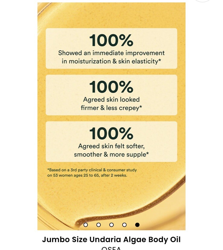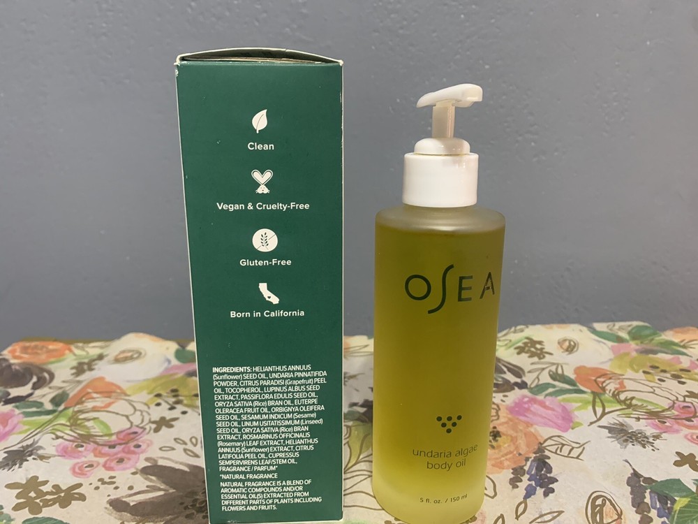 OSEA Undaria Algae Body Oil 5 fl. oz/150 ml. Made in USA. Please check oseamalibu.com for product details and review. Clinically proven to instantly improve the look of skin elasticity and deliver deep moisturization. Our seaweed-infused body oil is a rush of antioxidant-rich hydration that softens, nourishes and firms like no other. Visibly improves sagging skin for a toned and sculpted look. Rich yet never greasy, this intoxicating aromatherapy elixir enhances every inch. Mineralize, moisturize and glow! Also available in fragrance-free , which is hypoallergenic, dermatologist tested and safe for sensitive skin. To create this one-of-a-kind oil, we soak hand-harvested Undaria Algaeโข in barrels of oils to infuse the vitamins and minerals. Due to the artisanal manner of production, variation in color is normal. This oil contains Undaria Seaweed and as such, a naturally occurring seaweed sediment may be present at the bottom of your bottle. This is completely normal and does not affect the quality or efficacy of the product. Shipped promptly. ๐ฎ Packed carefully. ๐ฆ Smoke free. Thanks for shopping! ๐๏ธ ๐๏ธ ๐๏ธ ๐ ๐ ๐ Return item must include all original items undamaged, unused, in re-saleable condition, with all original packaging, etc. We will not offer a full refund if it has been altered/used in any way.
