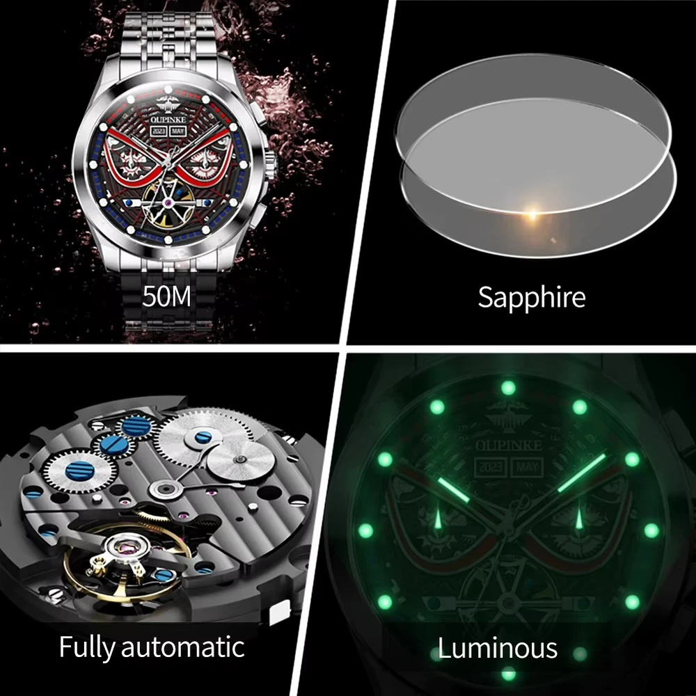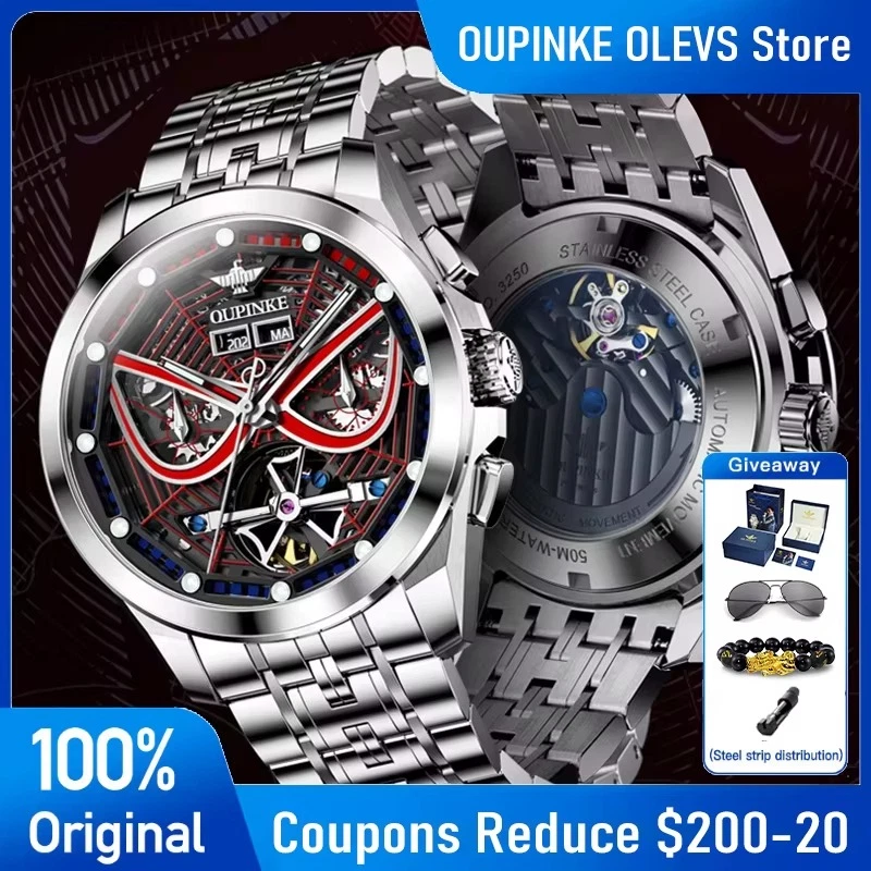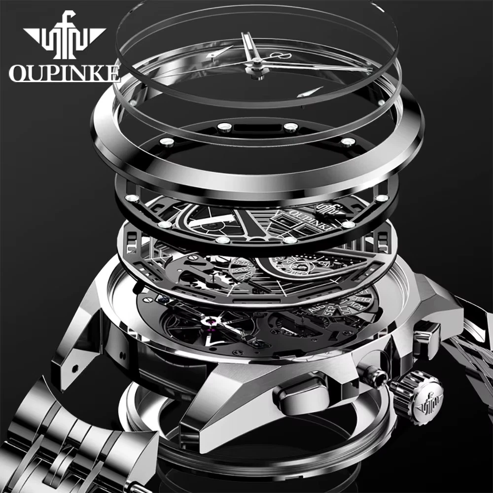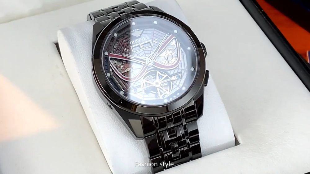Description Case Shape: Round; 3分贝带宽: OUPINKE /3250; Water Resistance Depth: 5Bar; Display Type: Needle; Band type: Sport Band; 奇异系列型号: Luxury/ru; 105℃挥发物≤: OUPINKE; Boxes & Cases Material: Paper; Dial Window Material Type: Sapphire Crystal; Band Material Type: Stainless steel; Case Material: Stainless steel; Band Length: 19; Movement: Automatic Self-Wind; Case Thickness: 14; Clasp Type: Push Button Hidden Claspnnn|Oupinke Watch|nn**Elegant Craftsmanship and Innovative Design**nThe OUPINKE 3250 Men's Watch is a testament to the brand's dedication to luxury and precision. Crafted with a round case shape and a sport band that ensures both comfort and durability, this timepiece is designed for the man who appreciates both style and functionality. The intricate needle display and sapphire crystal dial window material provide a clear view of the time, while the automatic self-wind movement ensures that the watch remains accurate and reliable.nn**Versatile and Functional for Every Occasion**nWhether you're attending a formal event or engaging in your daily activities, the OUPINKE 3250 watch is the perfect accessory. Its water resistance depth of 5Bar makes it suitable for a variety of environments, from casual outings to water sports. The luxury/ru series type number adds a touch of sophistication, making it an ideal choice for those who value aesthetics and functionality. The push button hidden clasp adds a subtle elegance to the overall design, ensuring that the watch remains securely fastened.nn**A Timepiece That Reflects Your Taste**nThe OUPINKE 3250 watch isn't just a timepiece; it's a statement of luxury and refinement. The perpetual calendar feature ensures that the watch remains in sync with the current date, while the tourbillon skeleton mechanism offers a glimpse into the intricate inner workings of the timepiece. The stainless steel case and band material, paired with a paper box and case, demonstrate the attention to detail and quality that this watch embodies. With the OUPINKE 3250 watch, you can be certain that your wrist is adorned with a piece that is as unique as you are.