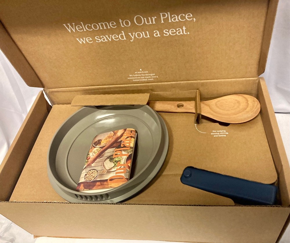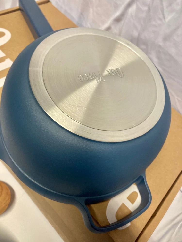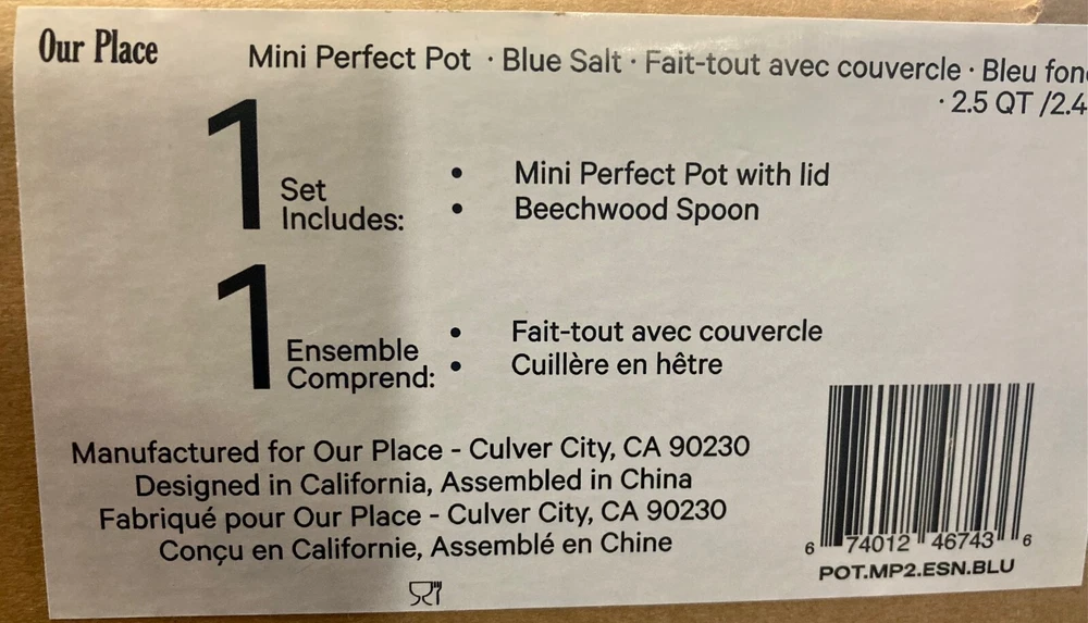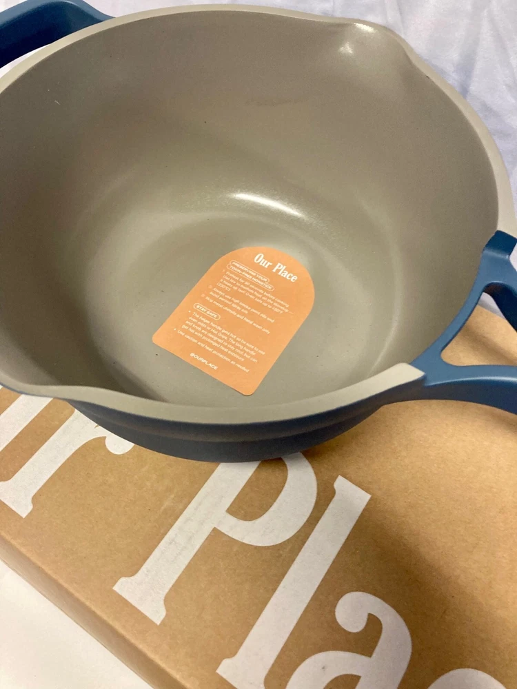 Tracking Number is provided for all listings! -- All items will be shipped out within 0-1 days after purchase! Feel free to ask us any questions you may have for our listings! -- OUR PLACE~Mini Perfect Pot, 2.5QT, Blue Salt, NEW (open bx) What's Included.. Mini Perfect Pot 2.0 Self-basting, steam-release lid with a built-in strainer Nesting Beechwood Spoon 16.9 in. length, 8.5 in. diameter, 4.2 in. depth, 6.7 in. height with lid 2.5 qt. capacity Lightweight construction (3.3 lb.) Compatible with all cooktops, including induction Aluminum body for fast, even heat Designed as a pot that does everything and then some, this ultra-handy size is perfect for sauces, soups, grains, eggs, leftovers, and so much more. A 2.5 qt. pot that boils, bakes, braises, roasts, fries, strains, serves, stores … does it all! Featuring Thermakind® — our exclusive, most advanced, 50% longer lasting ceramic nonstick coating made without potentially toxic materials like PFAS (including PTFEs and PFOAs), lead and cadmium Oven safe up to 450°F, for all your favorite stovetop-to-oven recipes