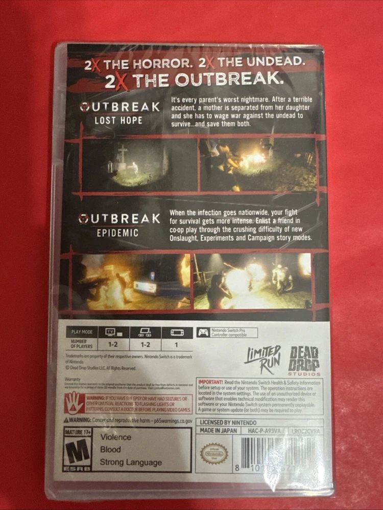 The product is "OUTBREAK COLLECTION PART 2" for the Nintendo Switch, released in 2023. It is a mature-rated game published by Nintendo and comes sealed as new. This collection is part 2 of the Outbreak series and is specifically designed for the NTSC-U/C region, which includes the US and Canada. As it is for the Nintendo Switch platform, players can expect an immersive gaming experience on this console.