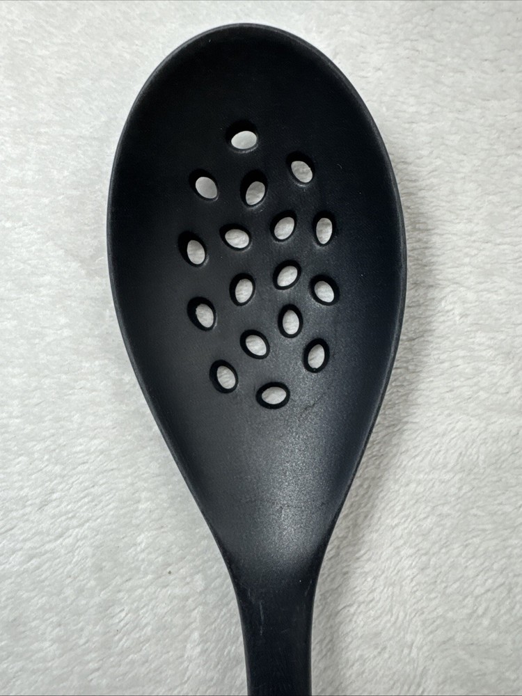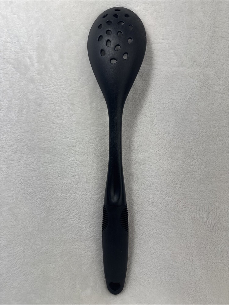 Model: OXO Good Grips Slotted Spoon Color: Black Pattern: Solid Type: Slotted Spoon Theme: Cooking UPC: Does not apply Making Method: Manual Personalize: No Material: Silicone, Nylon Brand: OXO Country/Region of Manufacture: Unknown MPN: Baking Number of Items in Set: 1 gtin13: Does not apply Handle Material: Silicone Set Includes: Slotted Spoon Features: Easy Clean, Light Weight, Soft Grip